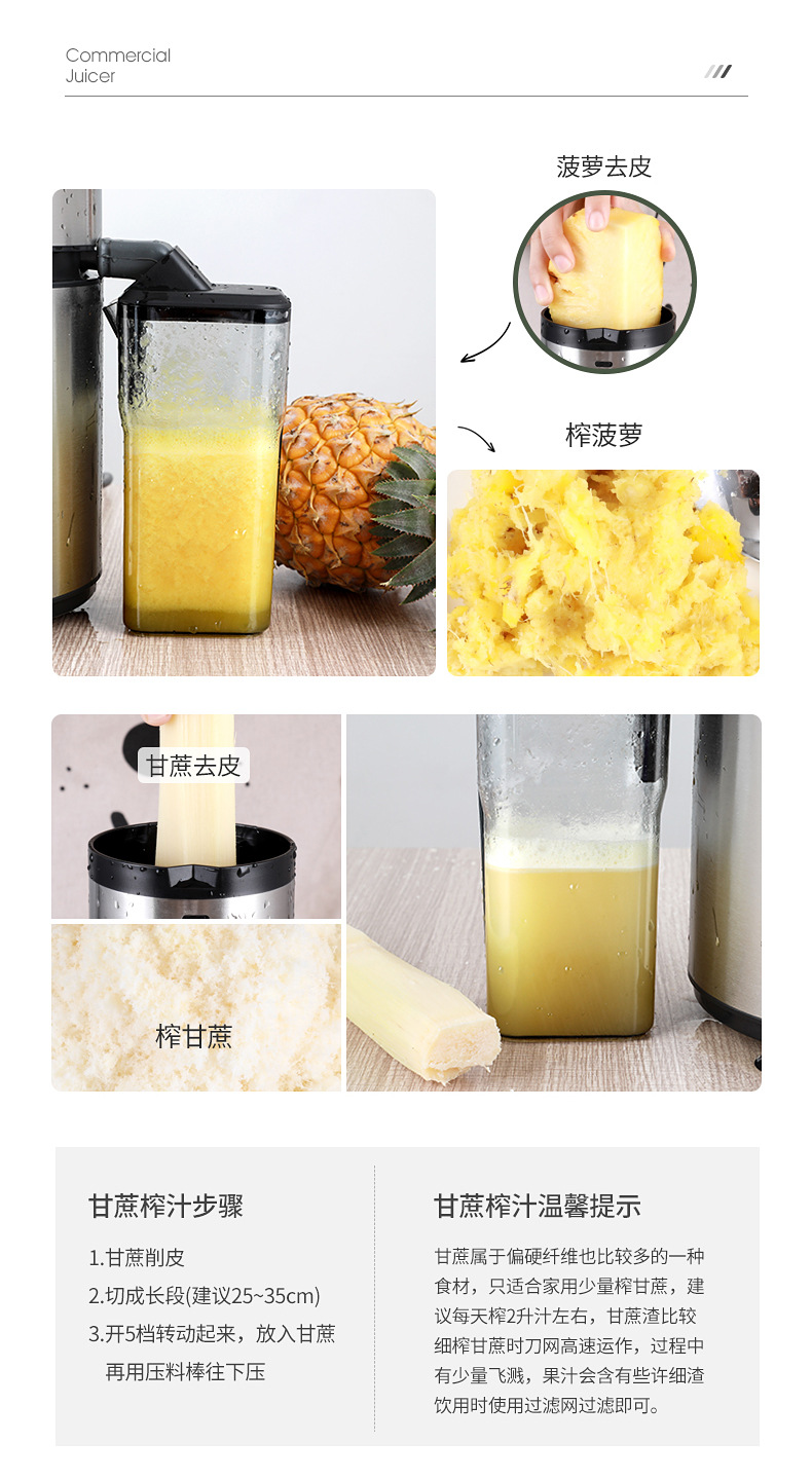 商用大口径榨汁机汁渣分离家用小型电动全自动榨甘庶生姜水果汁机