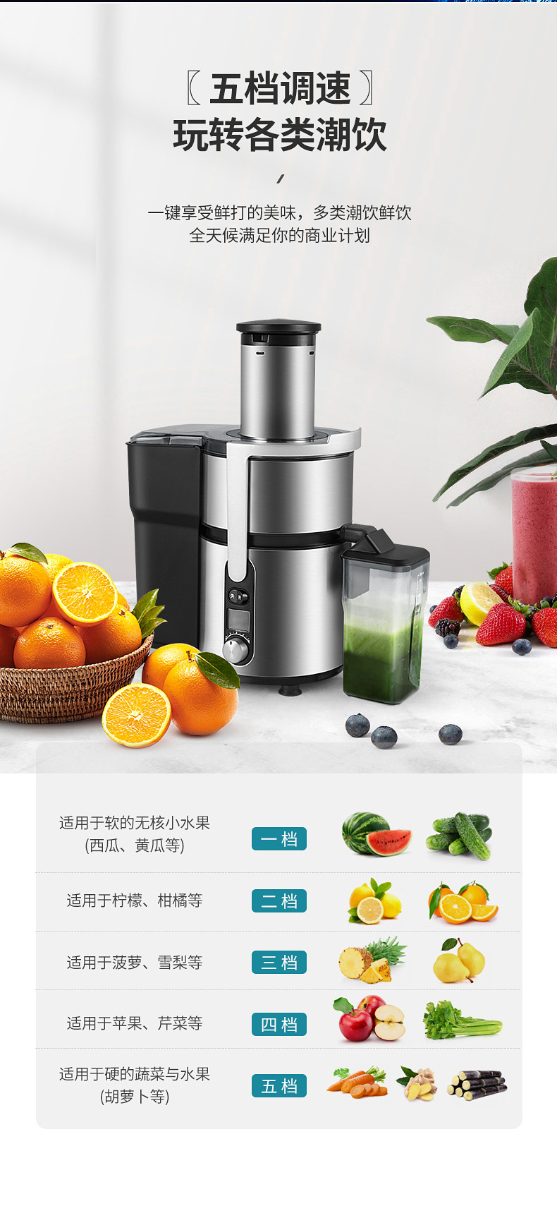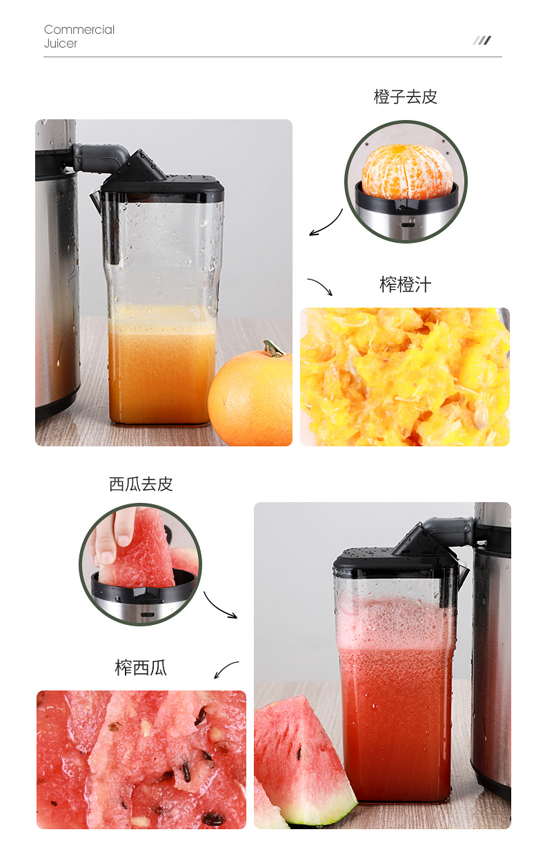 榨汁机汁渣分离家用水果蔬菜果汁机大型口径免切过滤原汁机