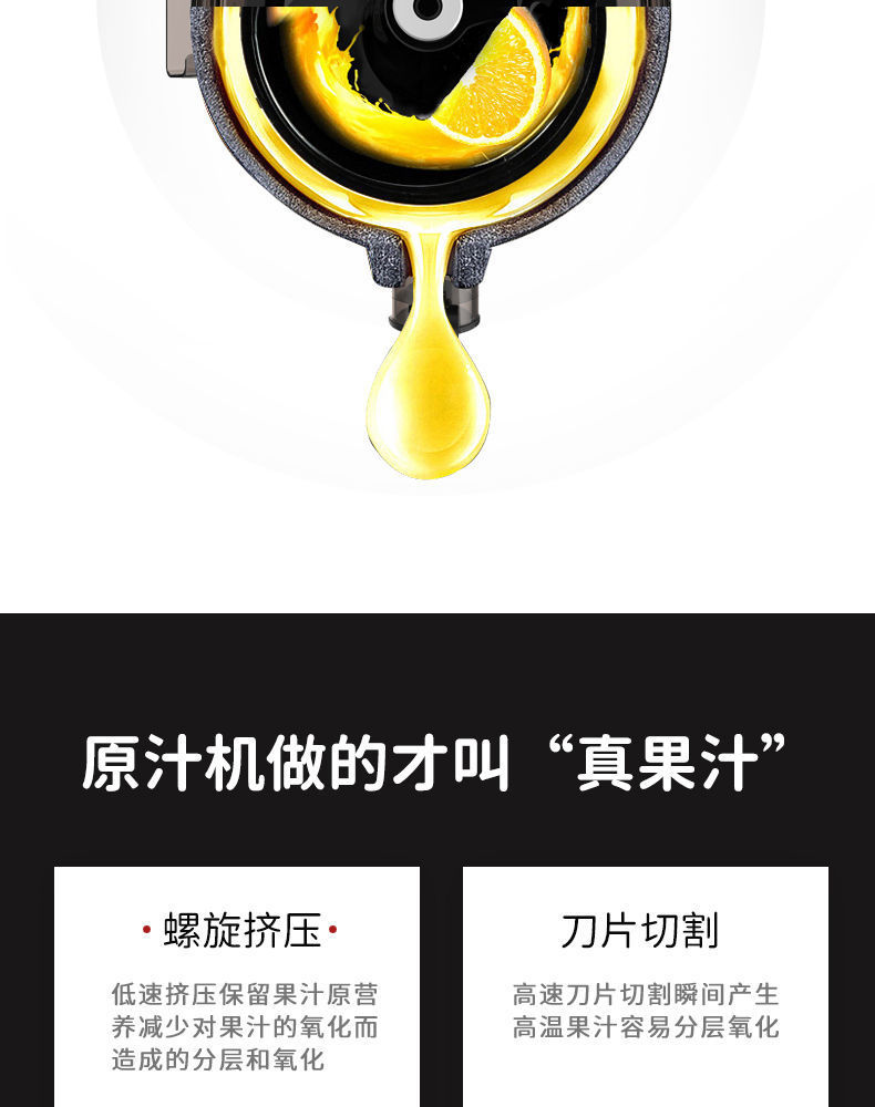 多功能超大口径原汁机果汁机慢速家用无刀头榨汁机炸水果机