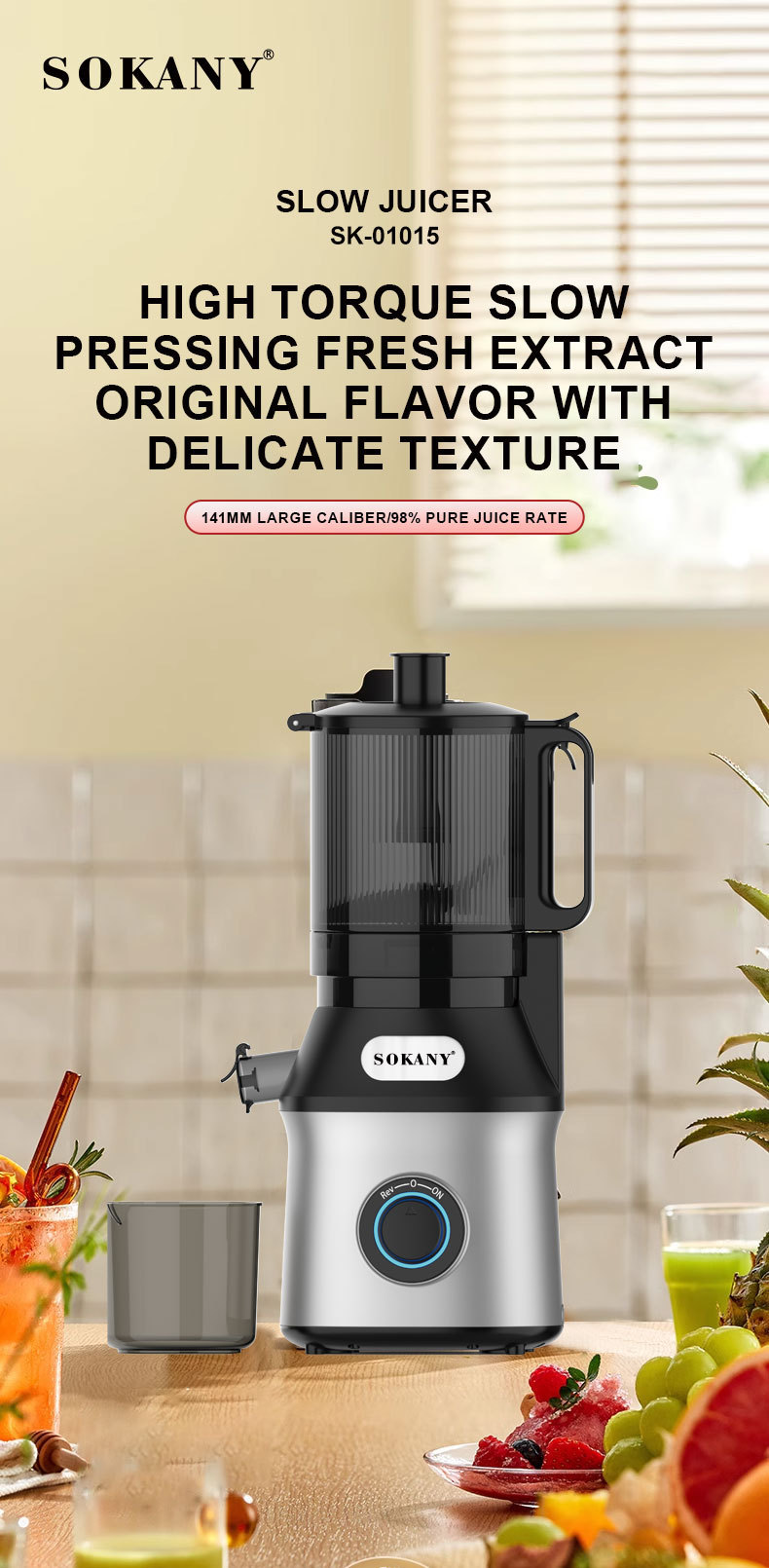 大口径原汁机1.8L慢榨机慢速家用榨汁机蔬菜水果榨汁