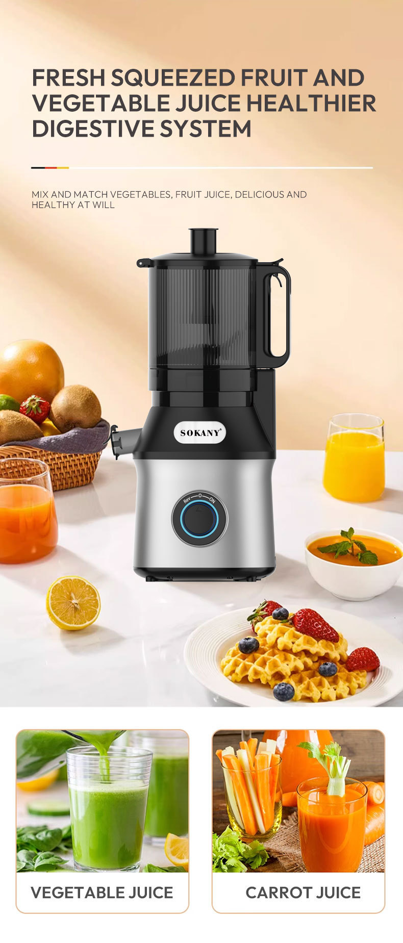 家用榨汁机切菜多功能水果机大口径全自动电动渣汁分离原汁机