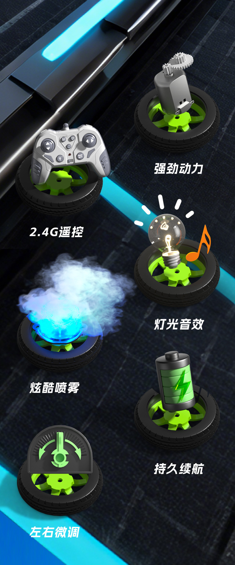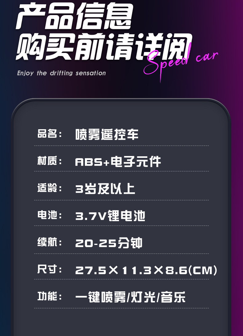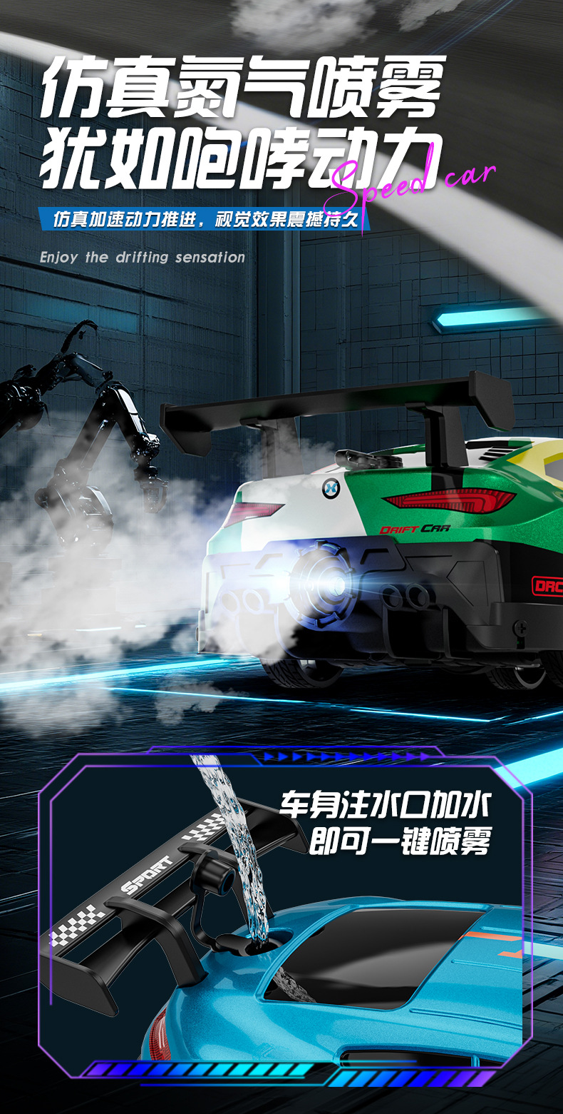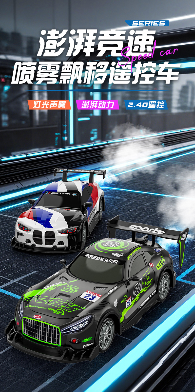 跨境2.4G遥控车灯光喷雾遥控赛车玩具车RC漂移儿童遥控车电动玩具
