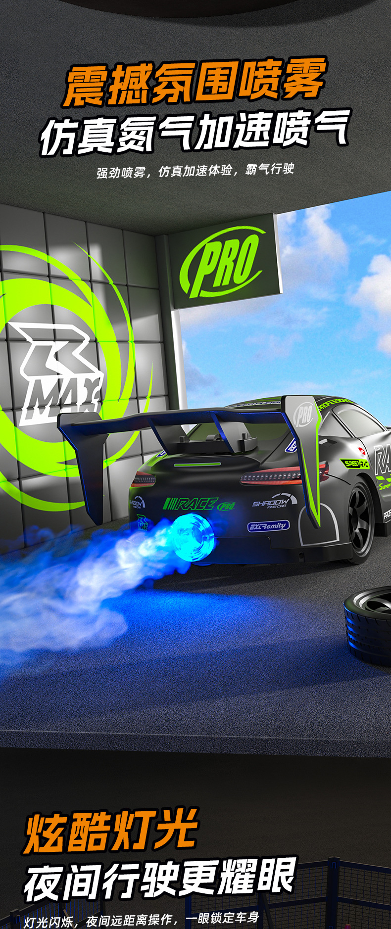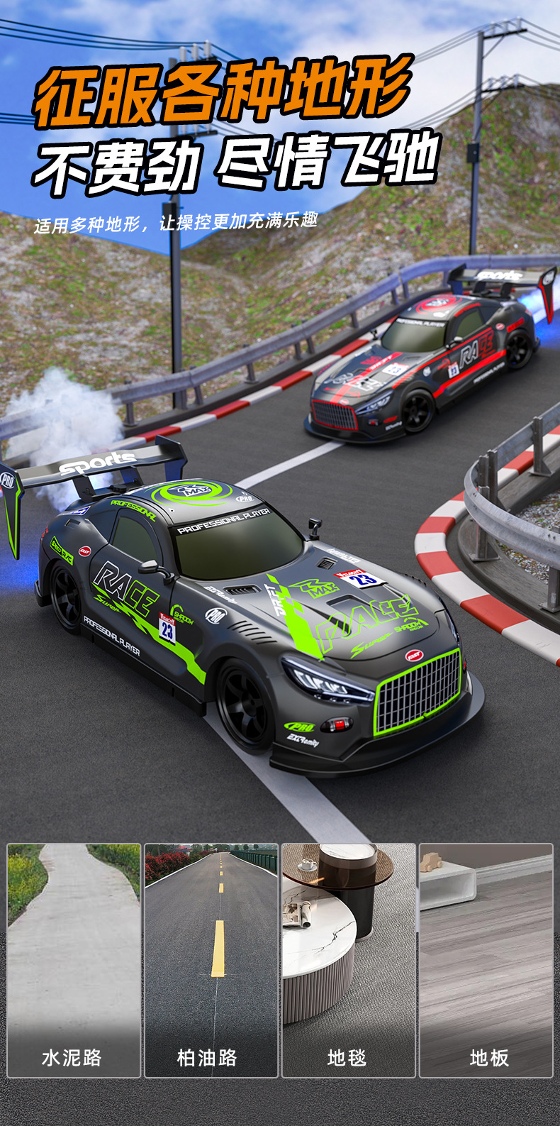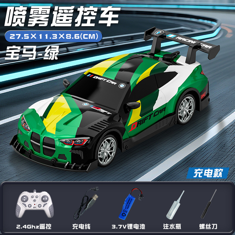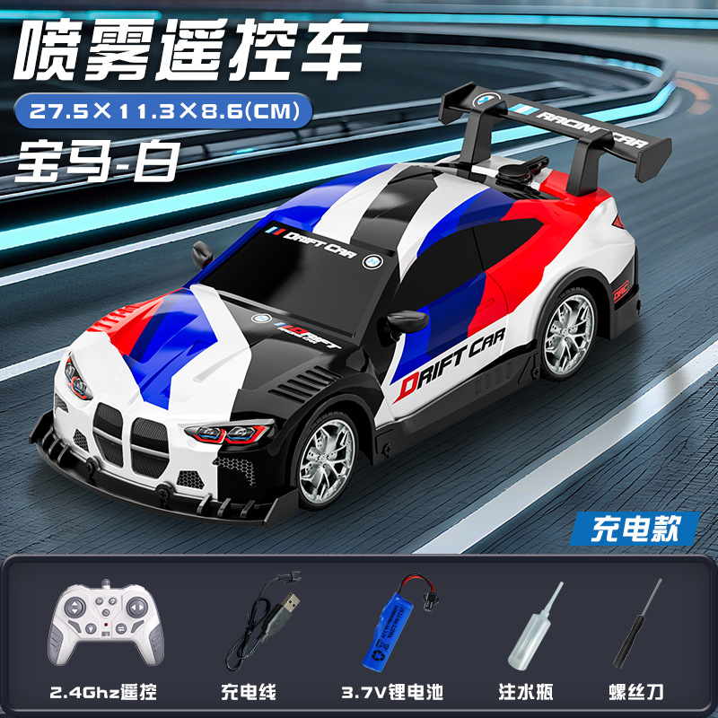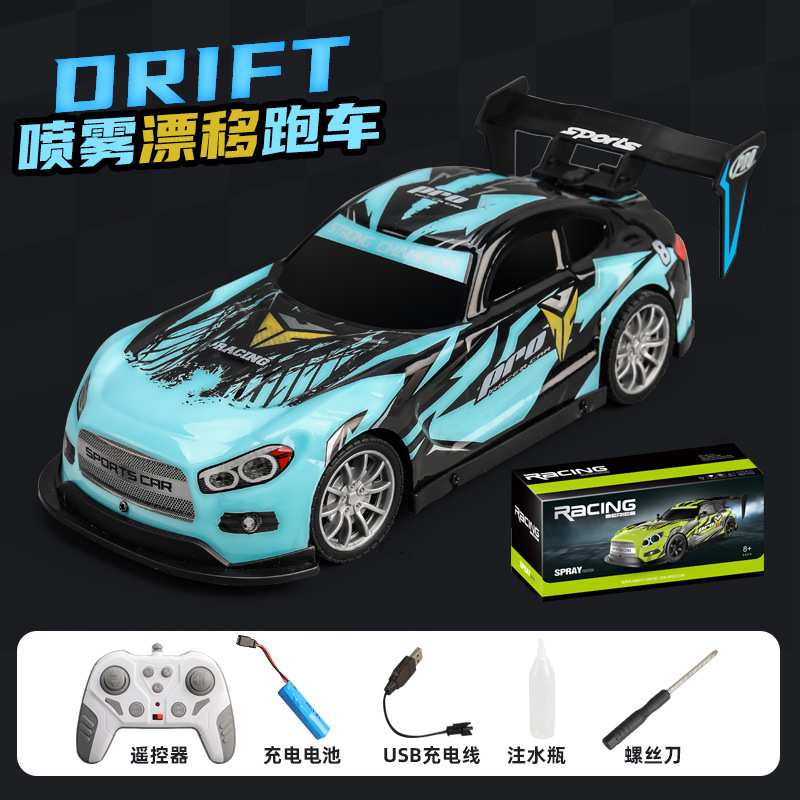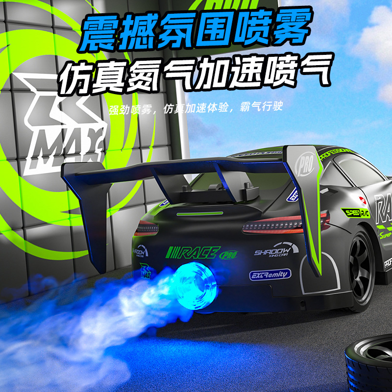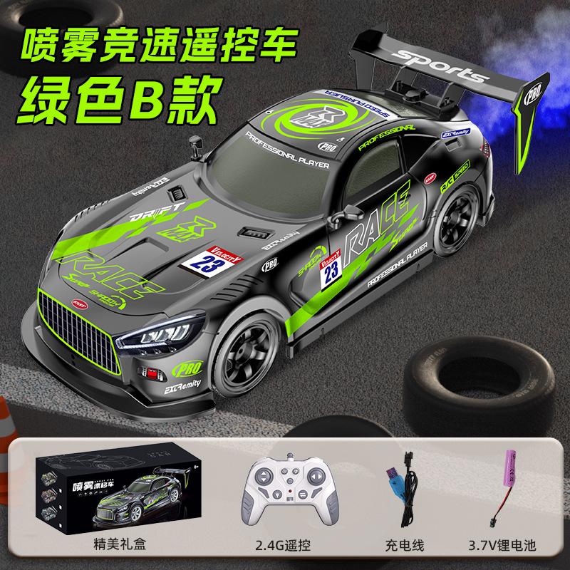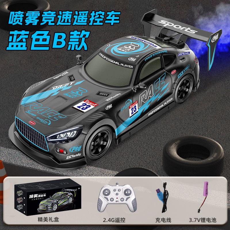 跨境新款2.4G遥控赛车男孩玩具RC漂移仿真灯光音效带喷雾跑车模型