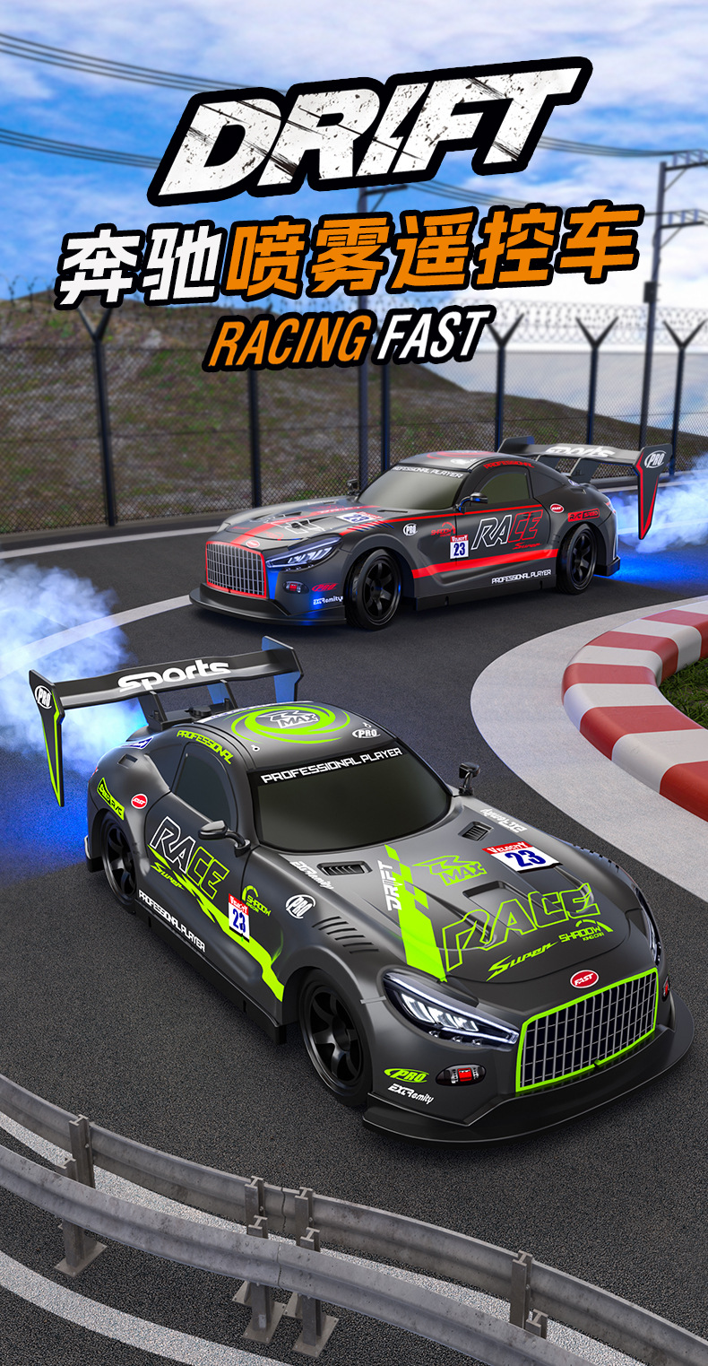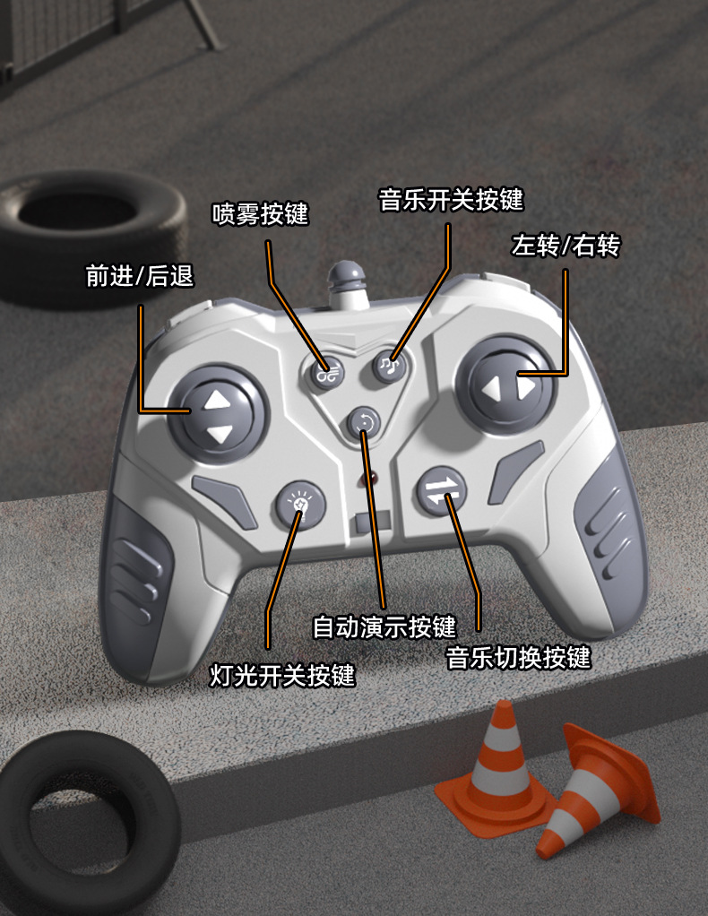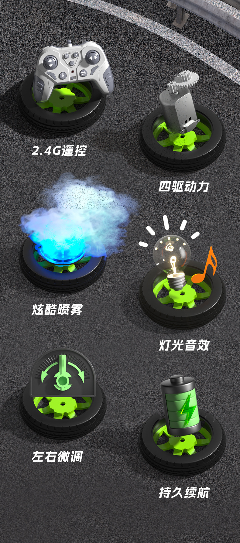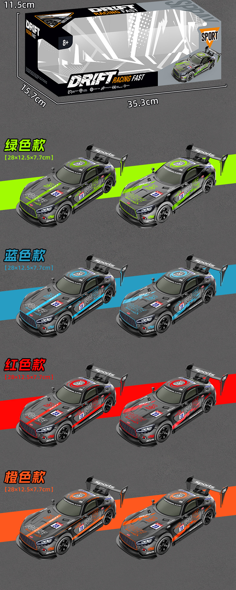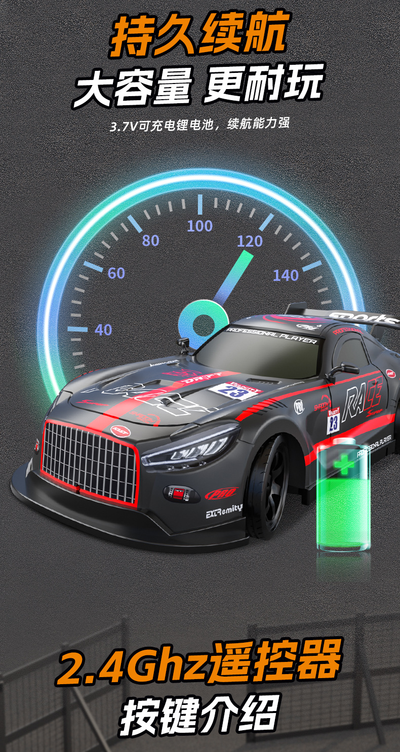 跨境新款2.4G遥控赛车男孩玩具RC漂移仿真灯光音效带喷雾跑车模型