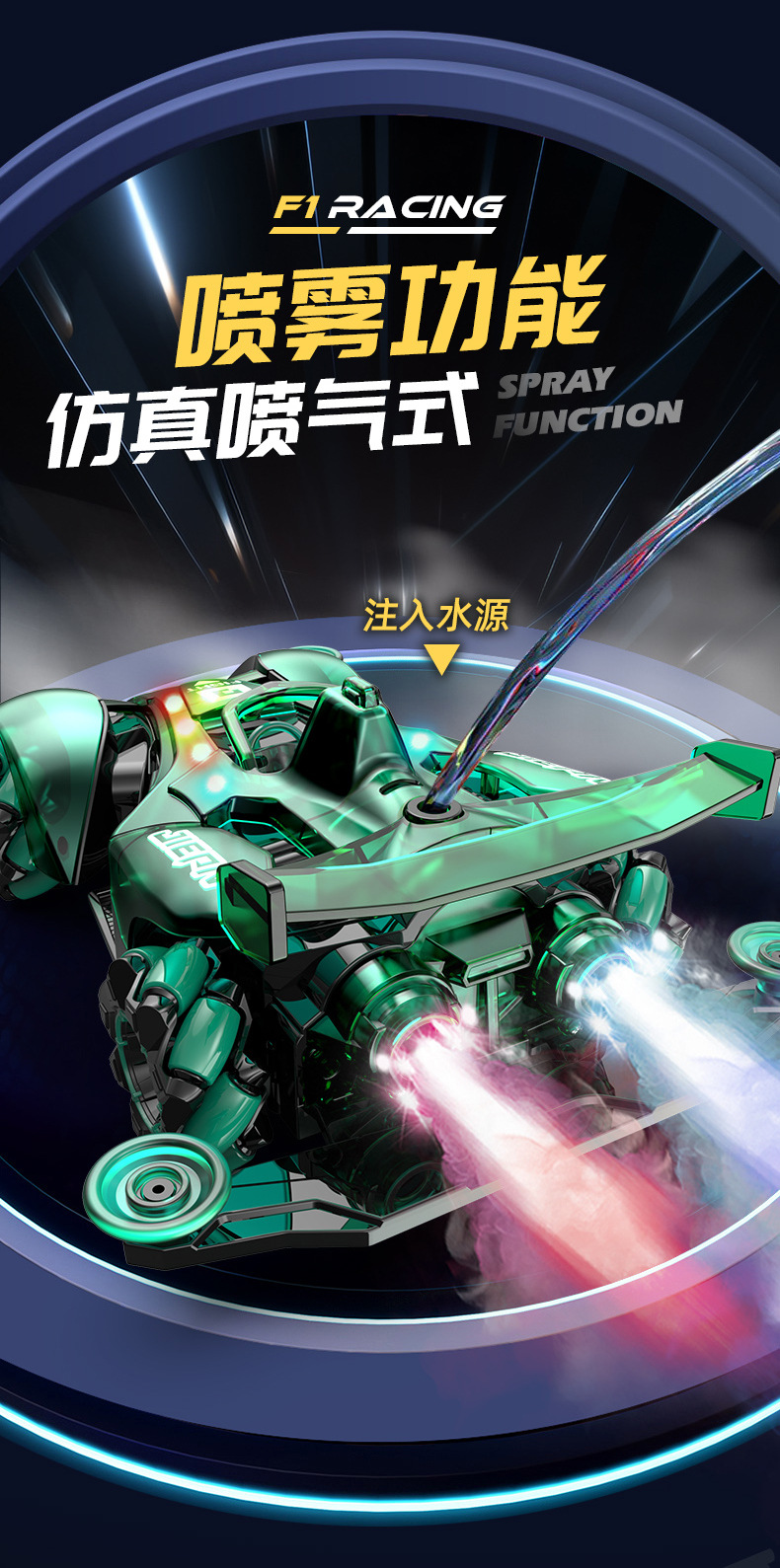 双喷雾F1赛车方程式【绿色】-升级手柄遥控+手表手势感应