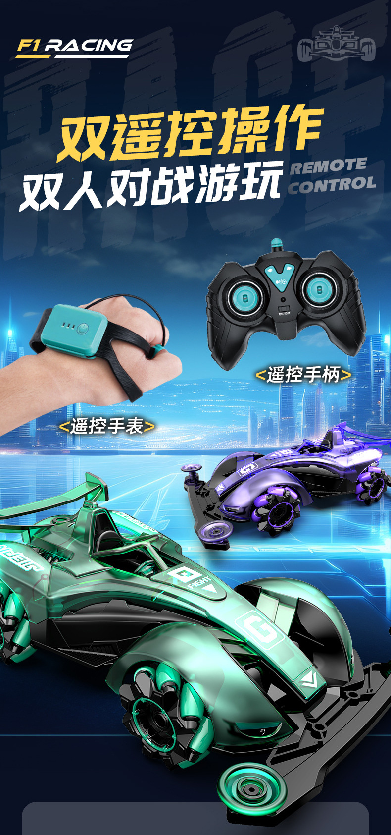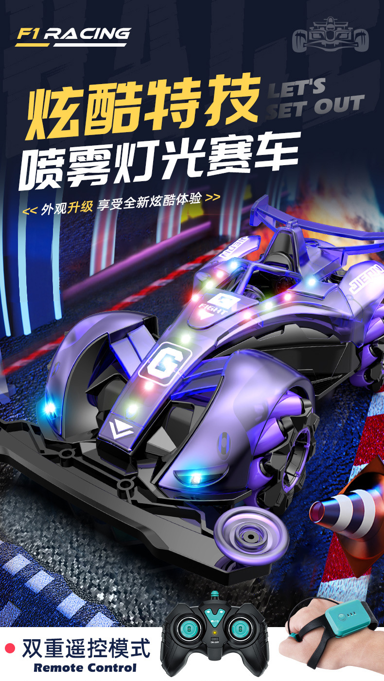 双喷雾F1赛车方程式【紫色】-升级手柄遥控+手表手势感应