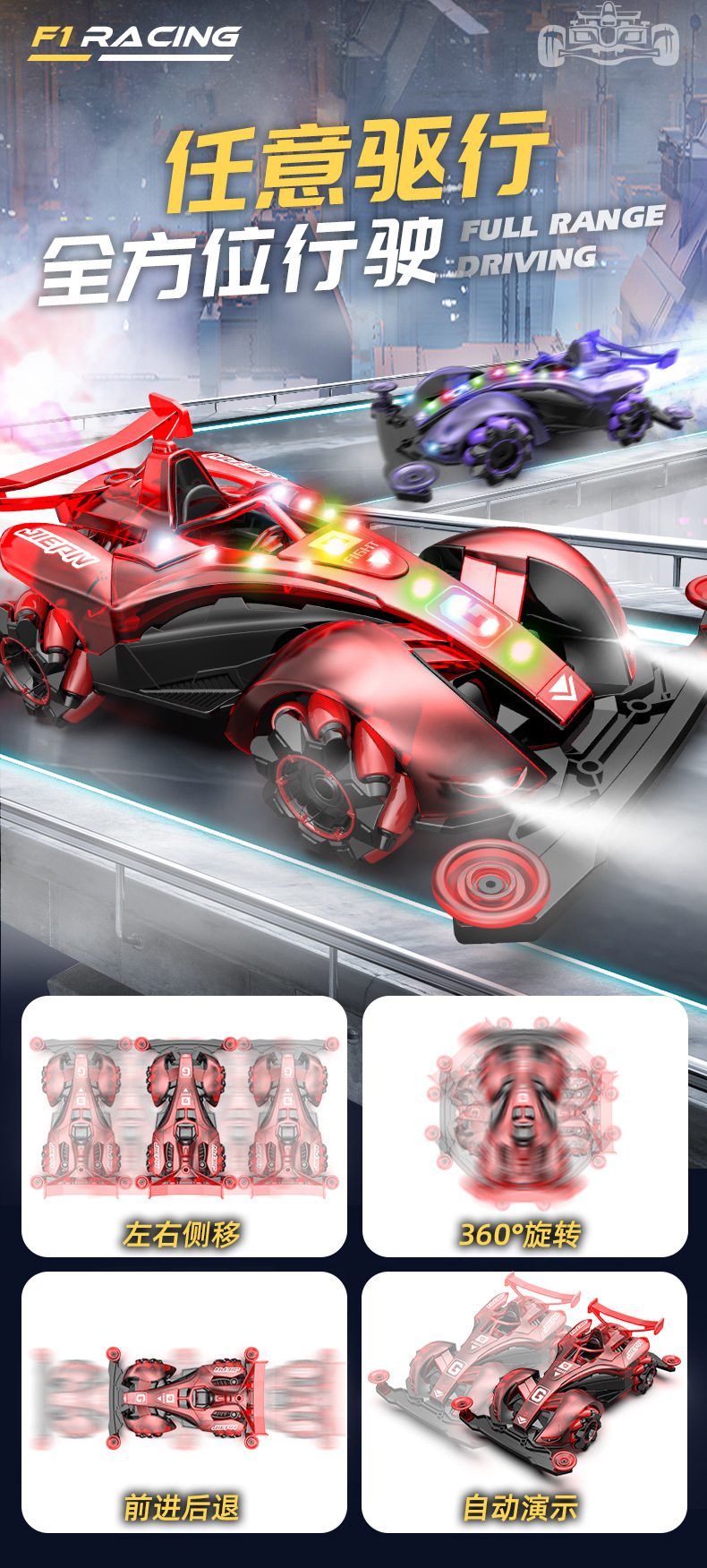 新款遥控赛车F1方程式特技漂移跑车双喷雾遥控车男孩礼物玩具车