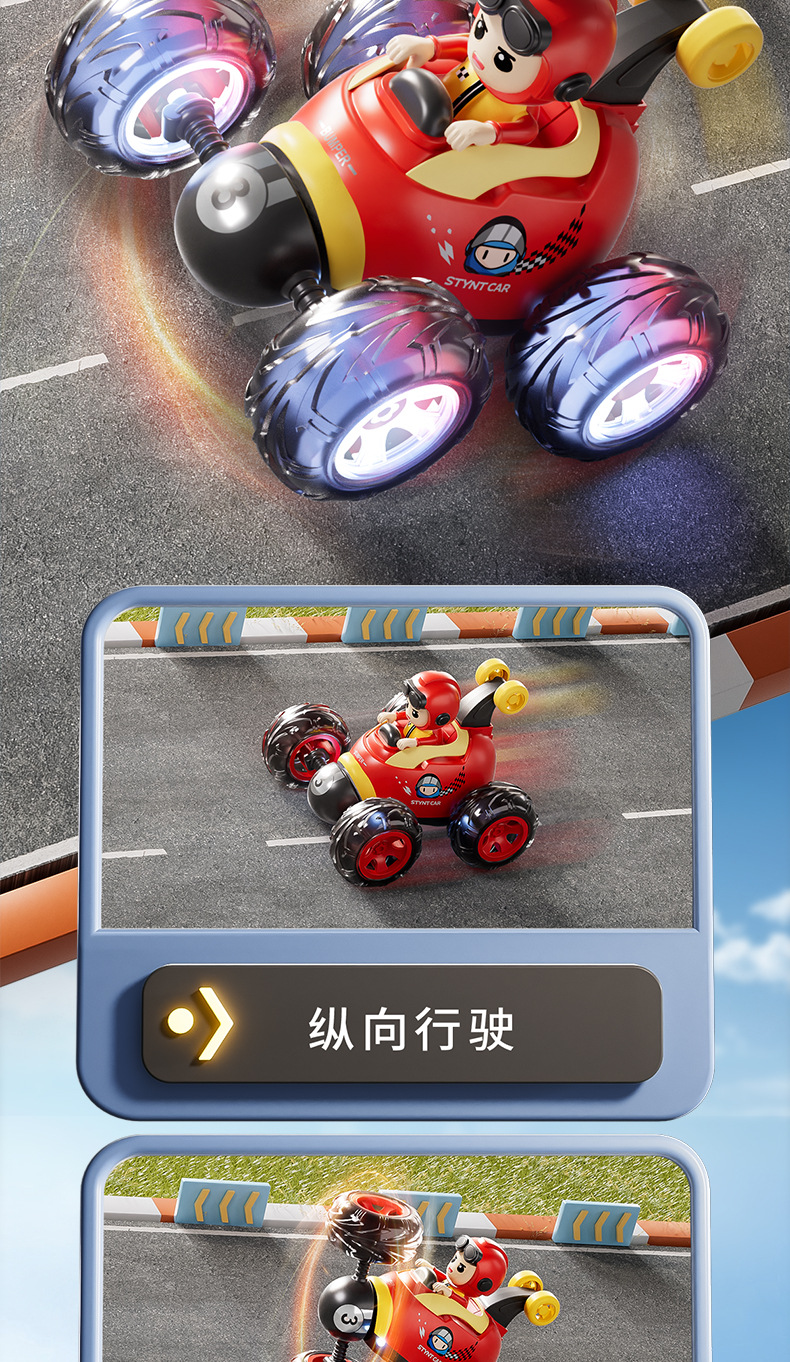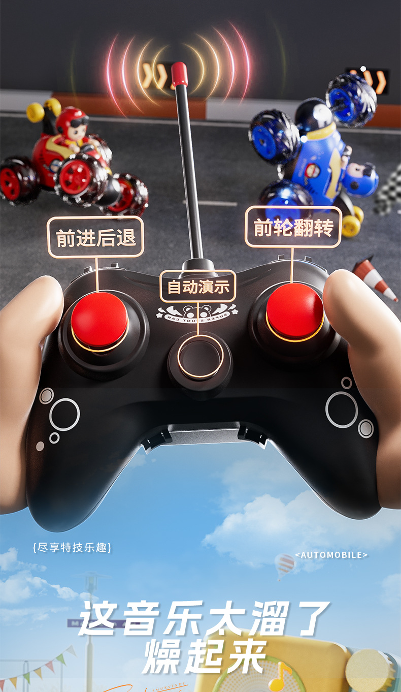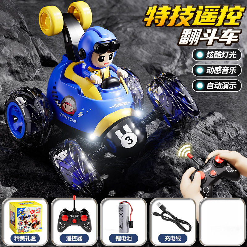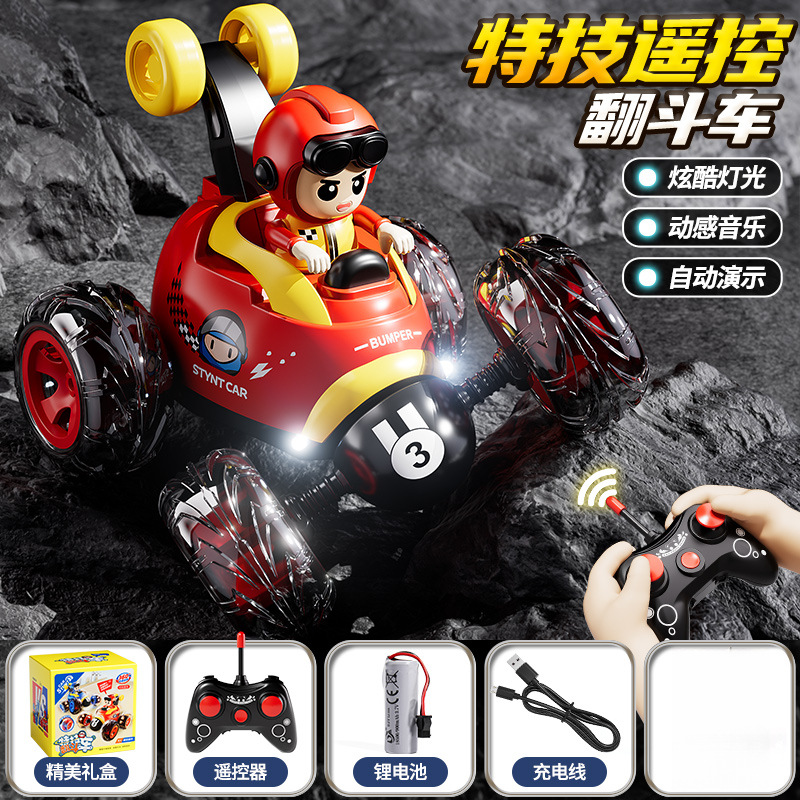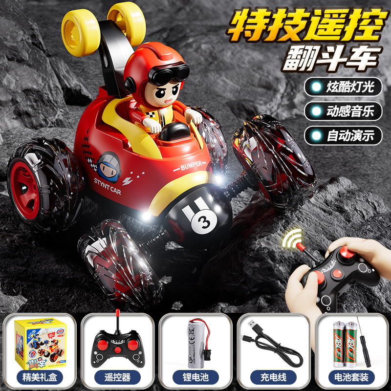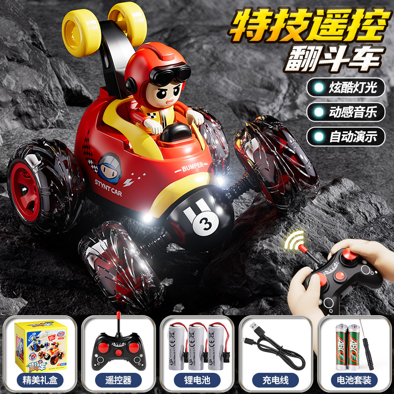 儿童遥控车电动玩具赛车越野男孩特技车翻滚玩具车翻斗车生日礼物