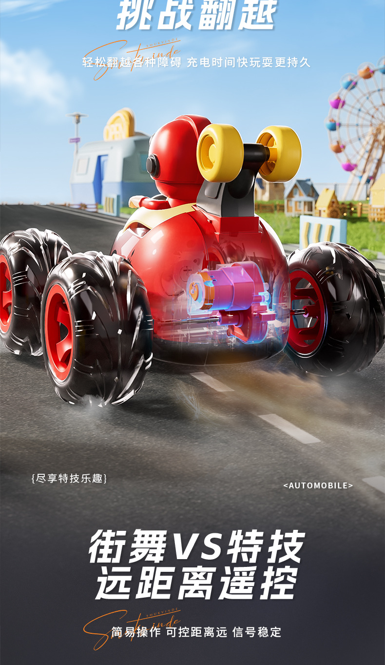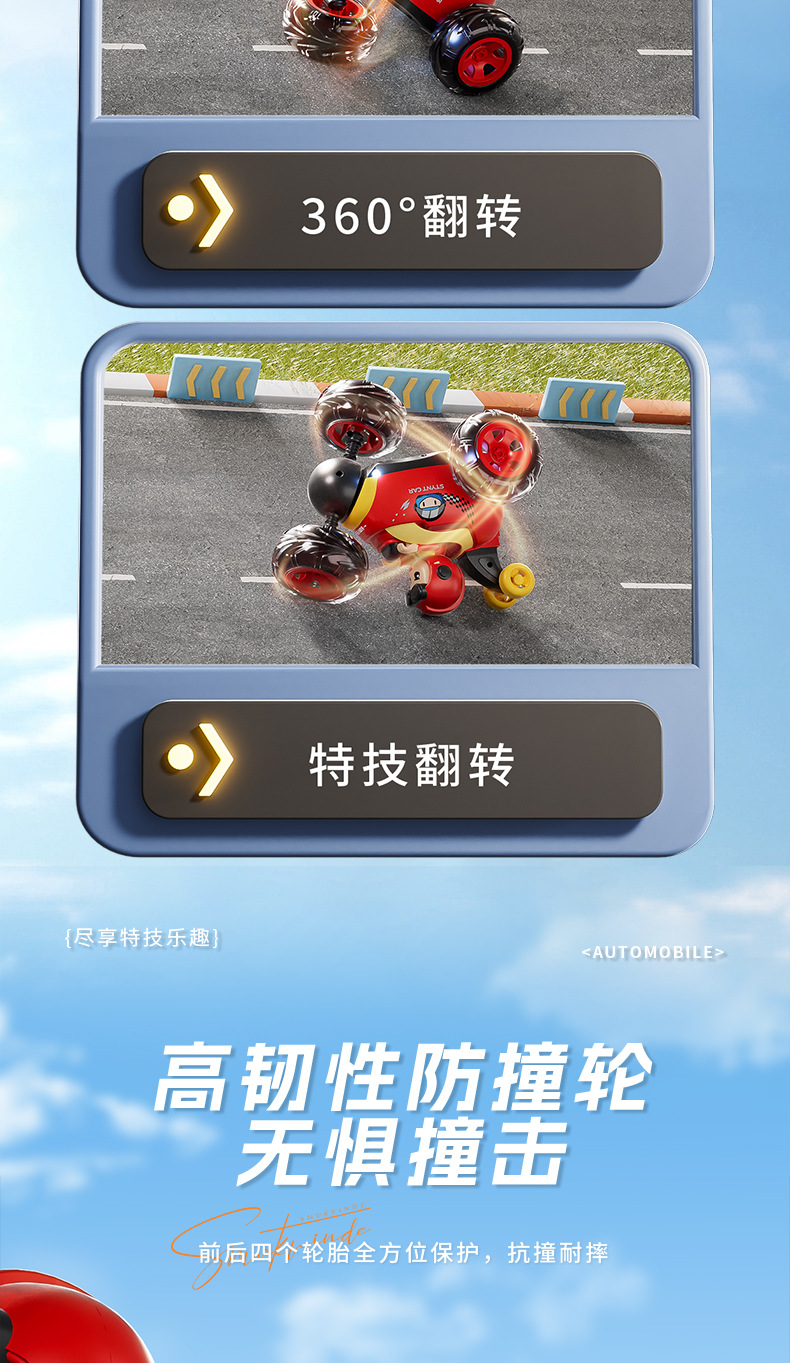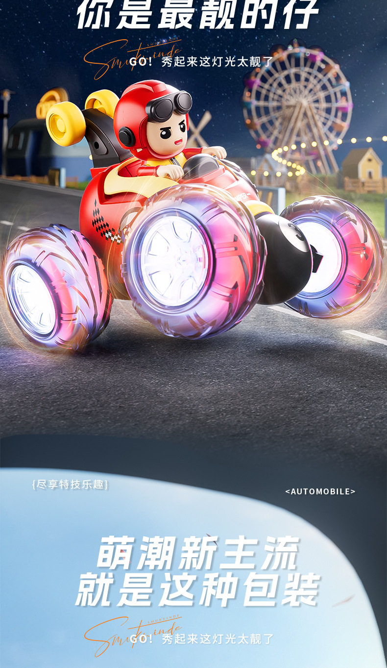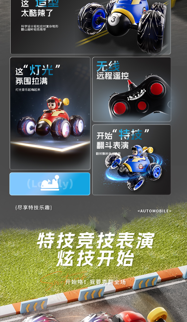 儿童遥控车电动玩具赛车越野男孩特技车翻滚玩具车翻斗车生日礼物