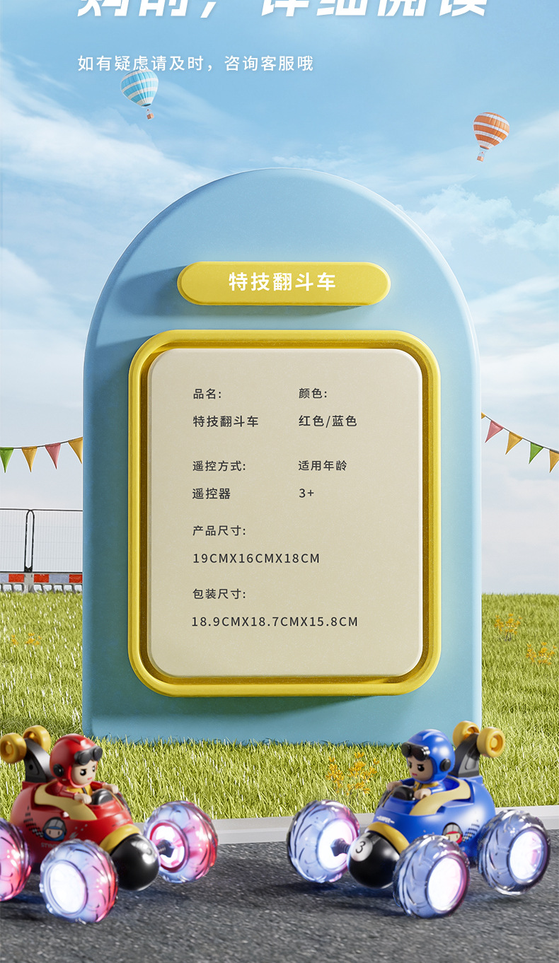 蓝色特技翻斗车礼盒【三锂电】+电池