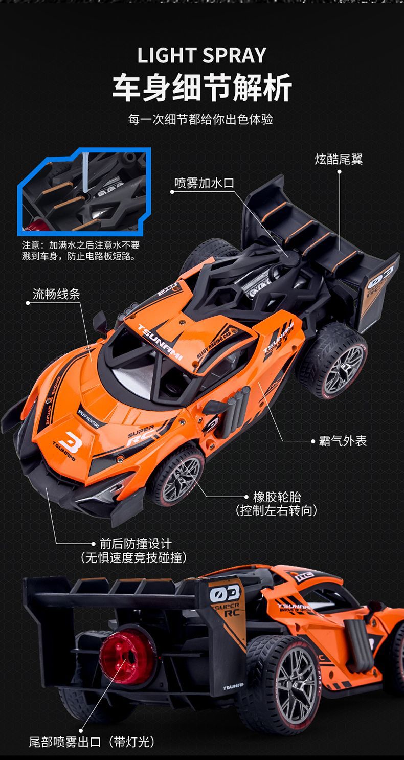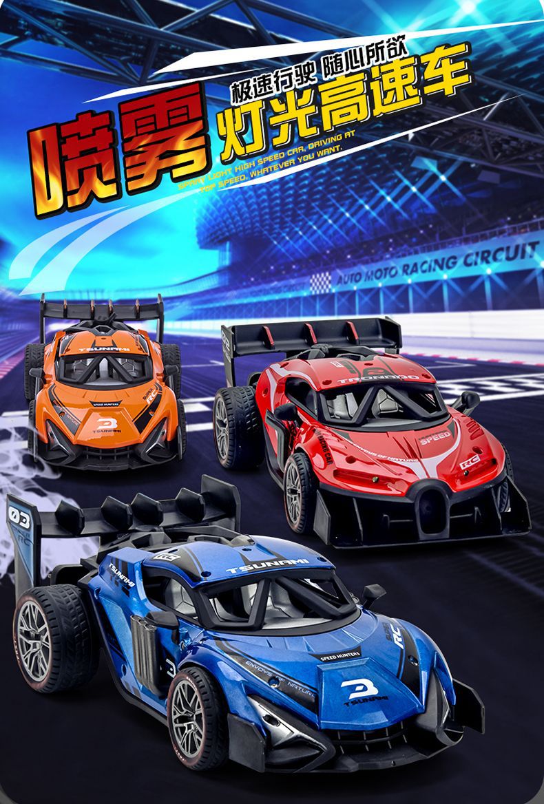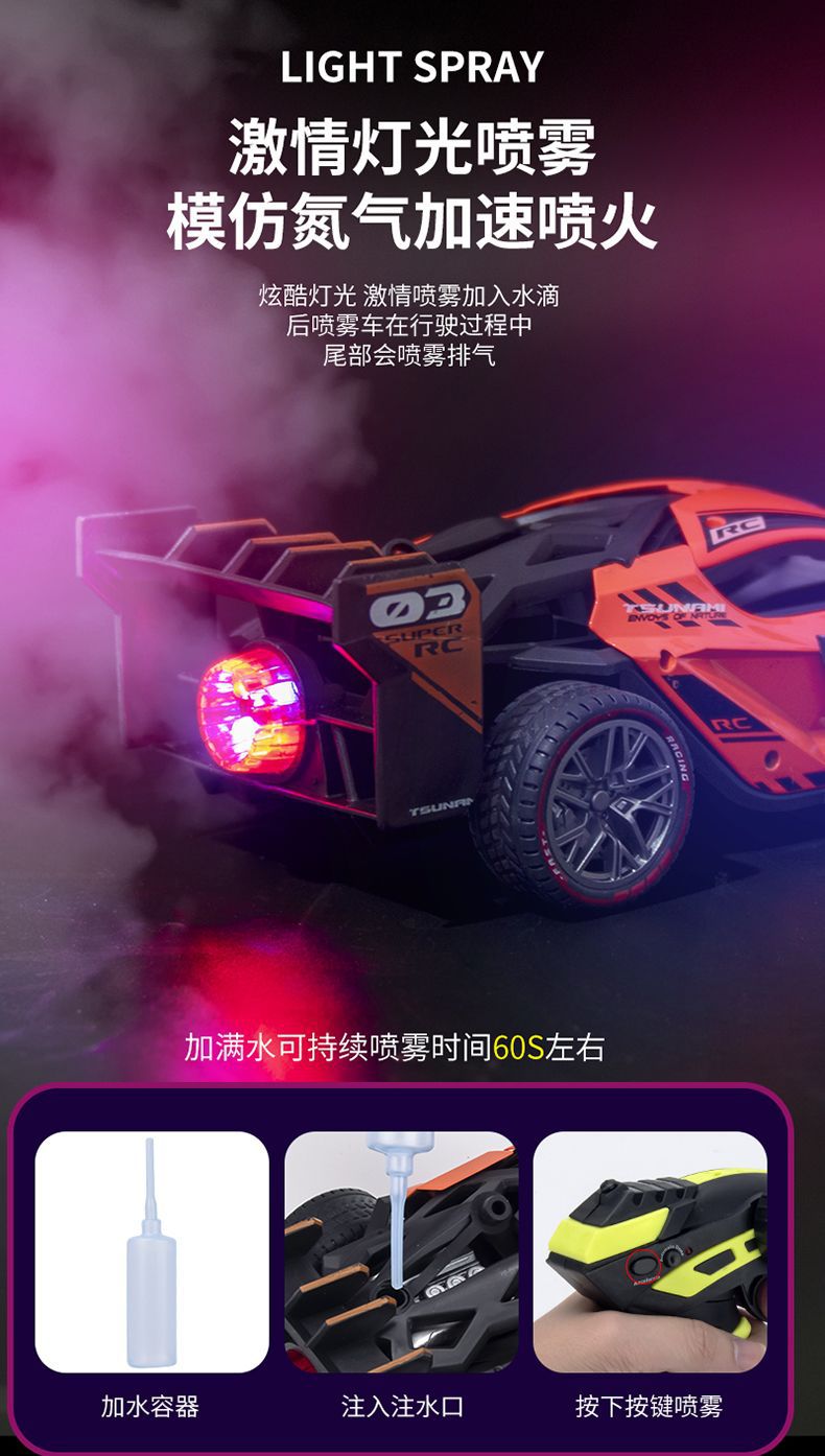 跨境儿童喷雾赛车无线遥控可充电高速灯光特技漂移车