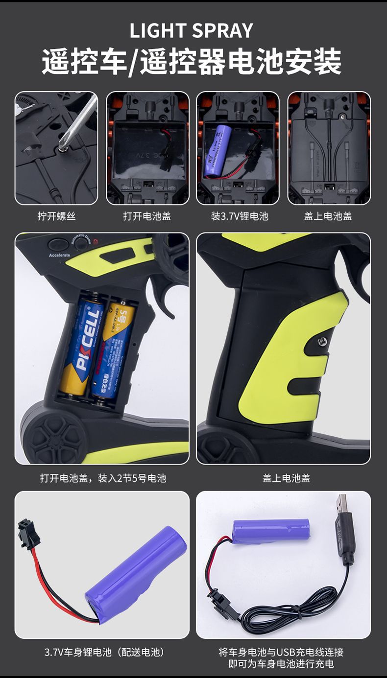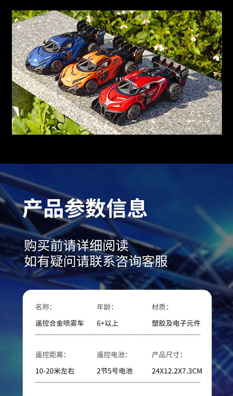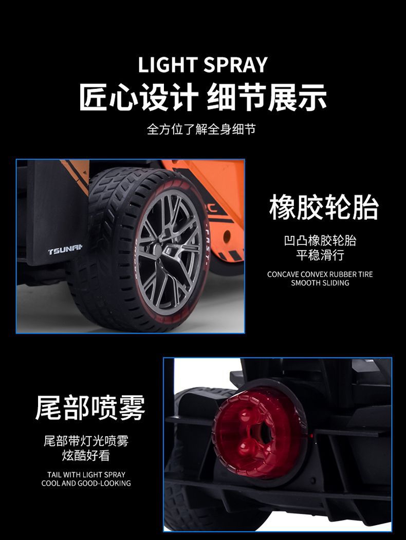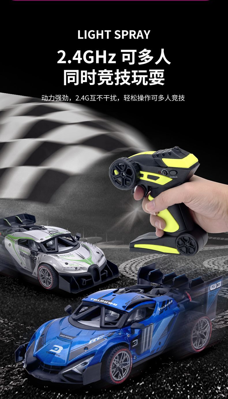 跨境儿童喷雾赛车无线遥控可充电高速灯光特技漂移车