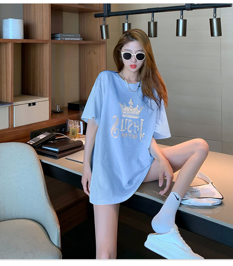 ins重工刺绣亮片短袖t恤夏季新款下身失踪港风chic洋气宽松上衣女