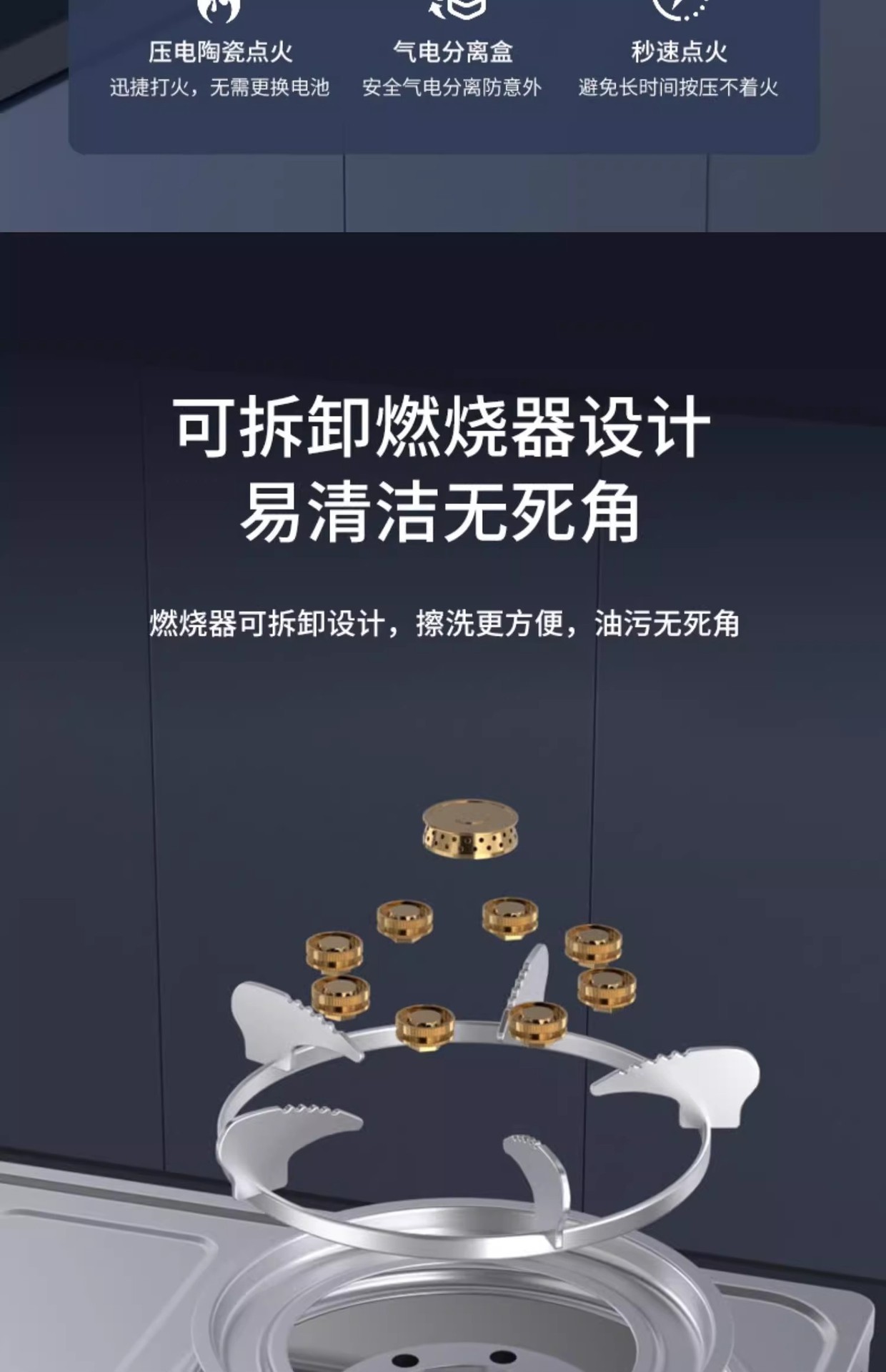 - 旗舰款5.2kw直喷猛火-无磁特厚不锈钢+一体炉架--铜质火盖