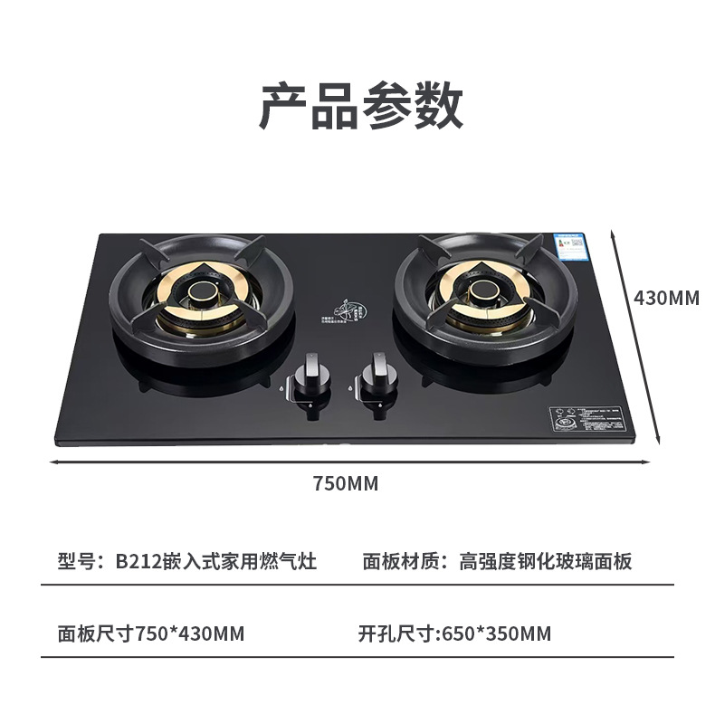 B212嵌入式燃气灶台嵌两用钢化玻璃高效猛火双灶节能