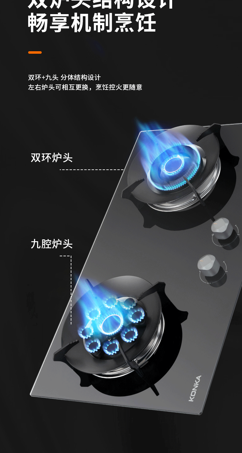 康佳5.2KW猛火燃气灶家用煤气灶双灶嵌入式天然气燃气灶