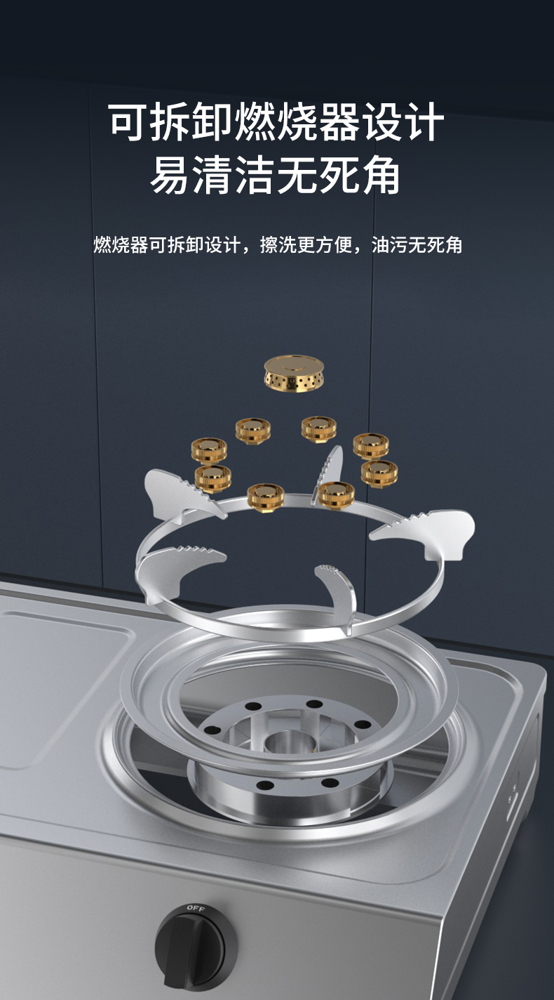 - 管道天然气-旗舰款5.2kw直喷猛火-无磁特厚不锈钢+一体防风炉架