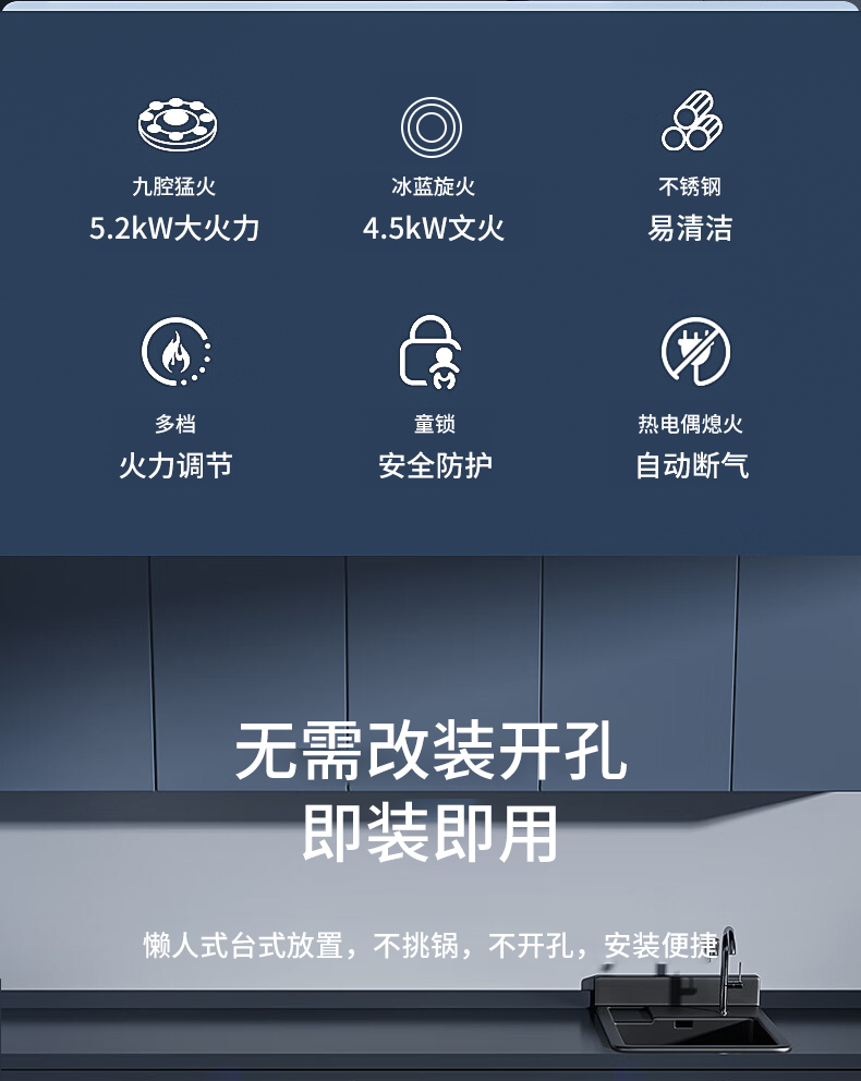 - 管道天然气-旗舰款5.2kw聚能炫火-无磁特厚不锈钢-熄火保护