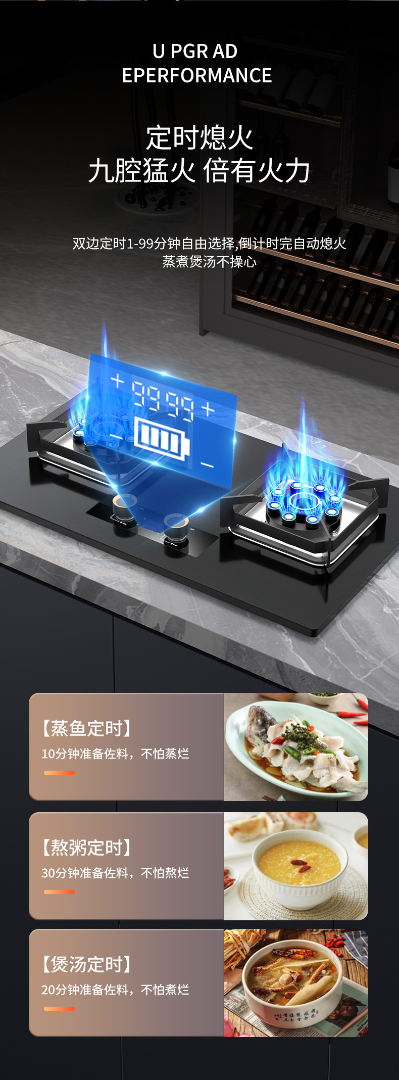 - 顶配款九腔鸳鸯灶-熄火保护-电量-防烫-双边定时-聚能环炉架