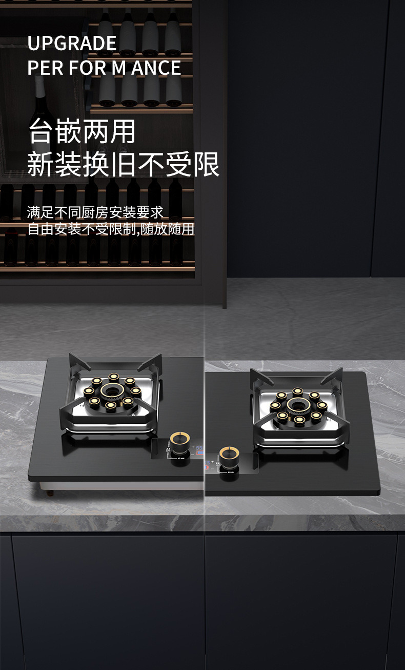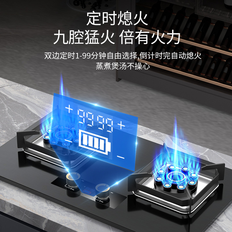 - 聚能环款双边九腔猛火灶-双边定时-防爆钢化玻璃