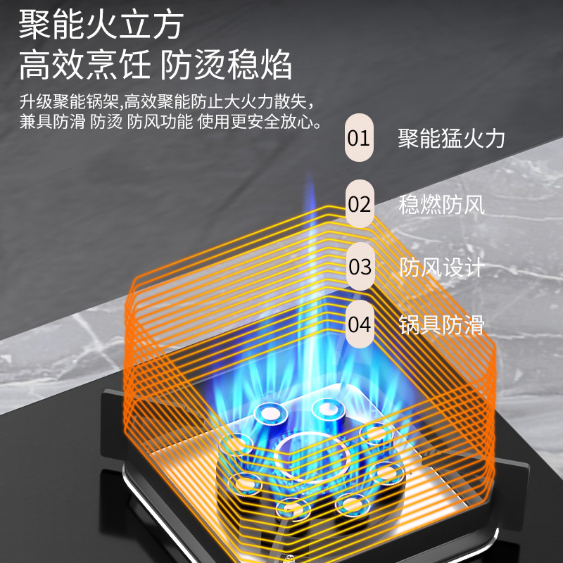 - 聚能环款双边九腔猛火灶-防爆钢化玻璃