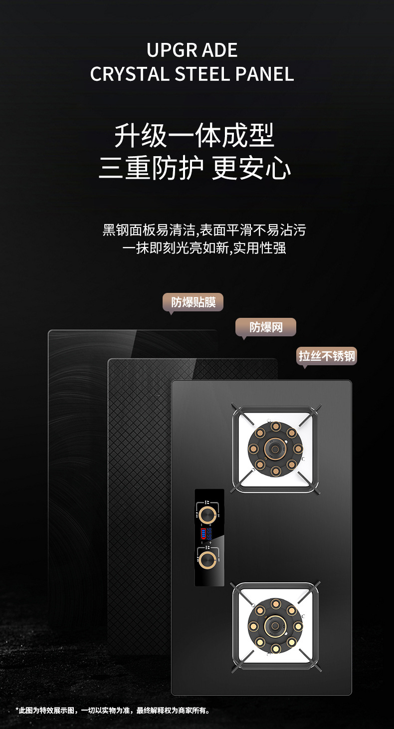- 至尊黑晶款750可拆卸双边九腔灶-双边定时-防风炉架