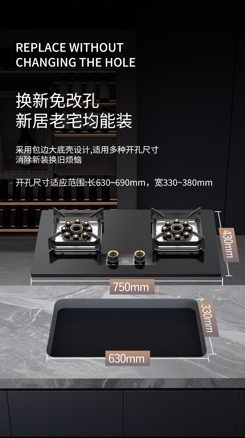 - 750大面板九腔鸳鸯灶-熄保-防烫提示-防风炉架
