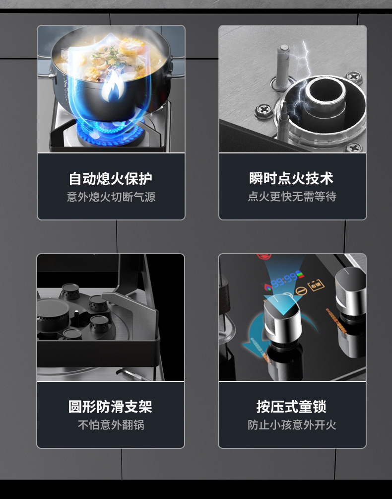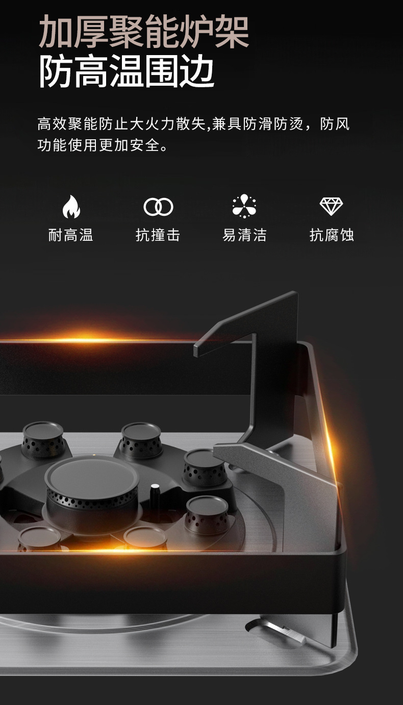 顶配款钢化玻璃+加大聚能炉架+鸳鸯猛火