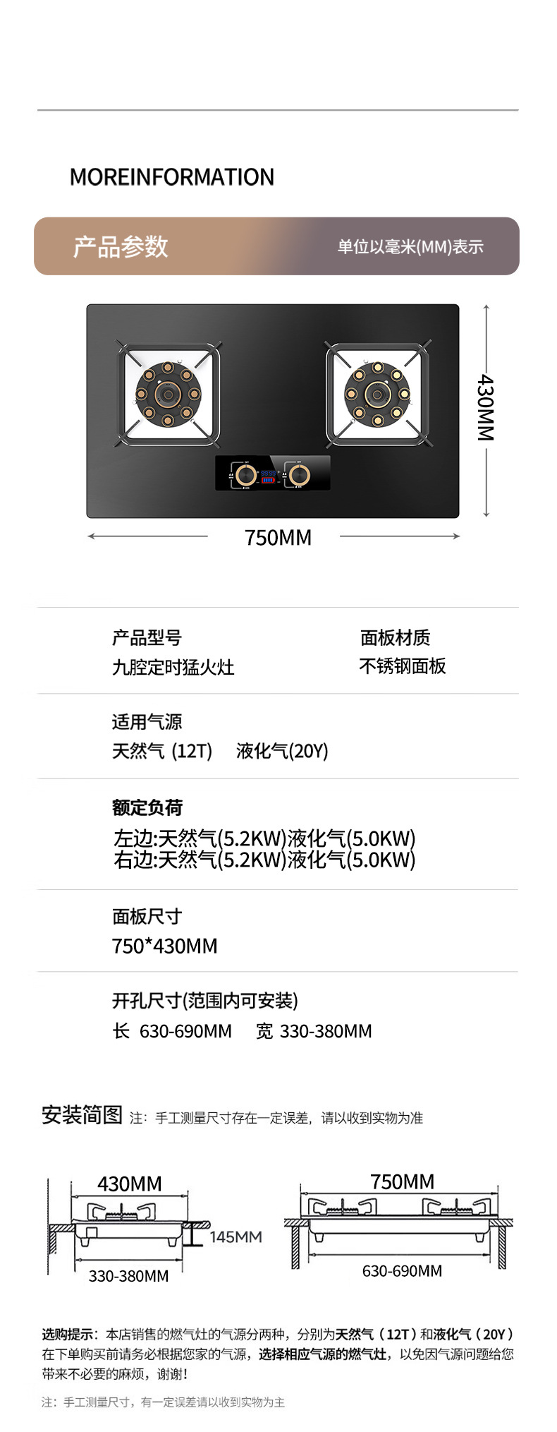 - 至尊款750可拆卸双边九腔灶-双边定时-防风炉架