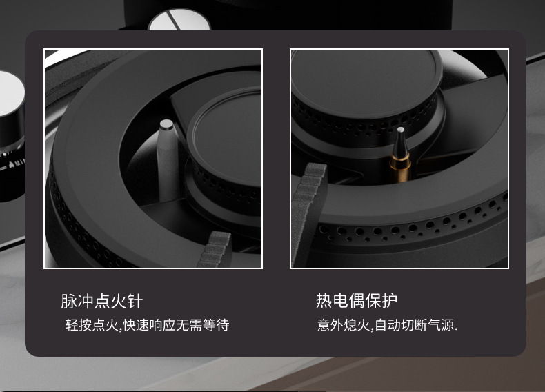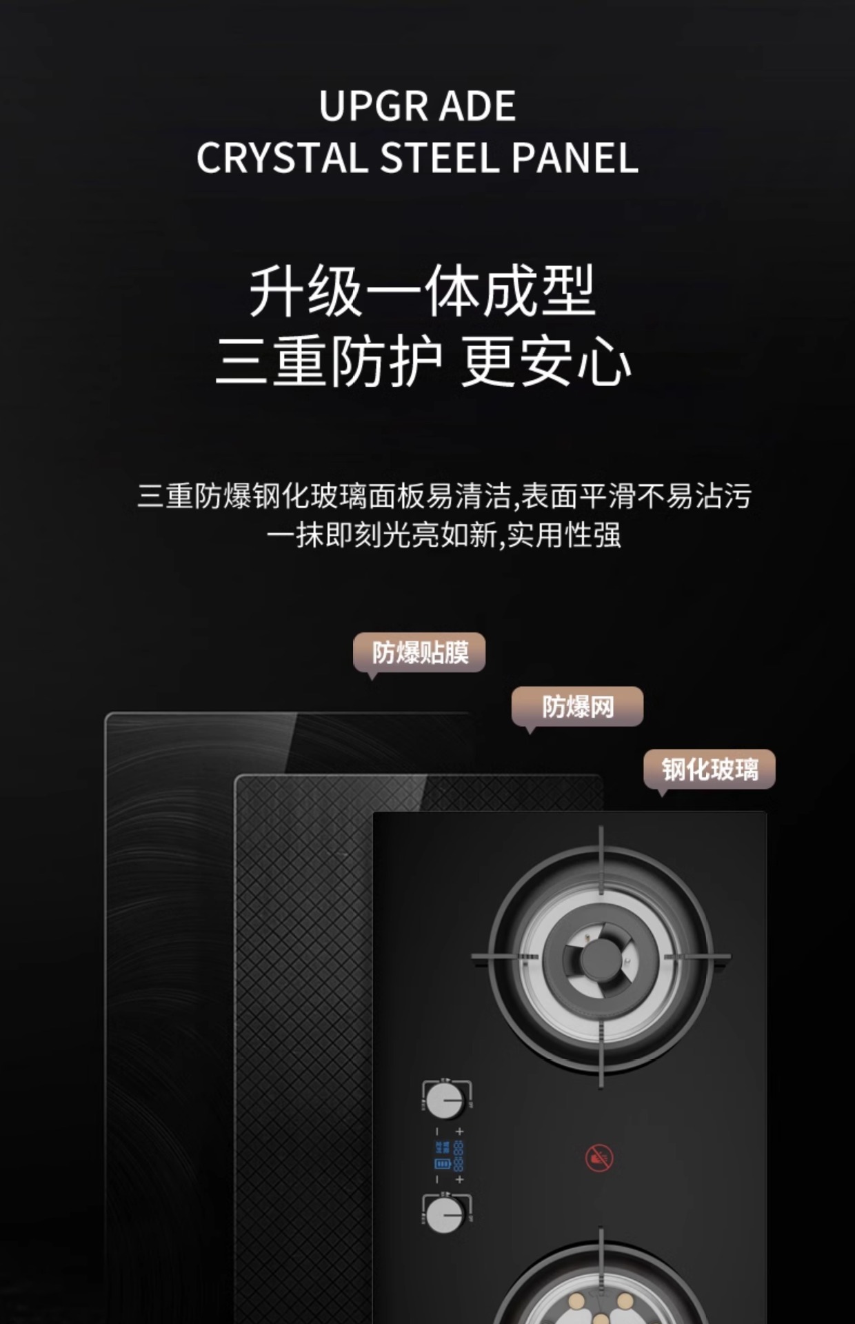 黑晶直喷猛火款750钢板可拆卸双边九腔灶-双边定时-防风炉架