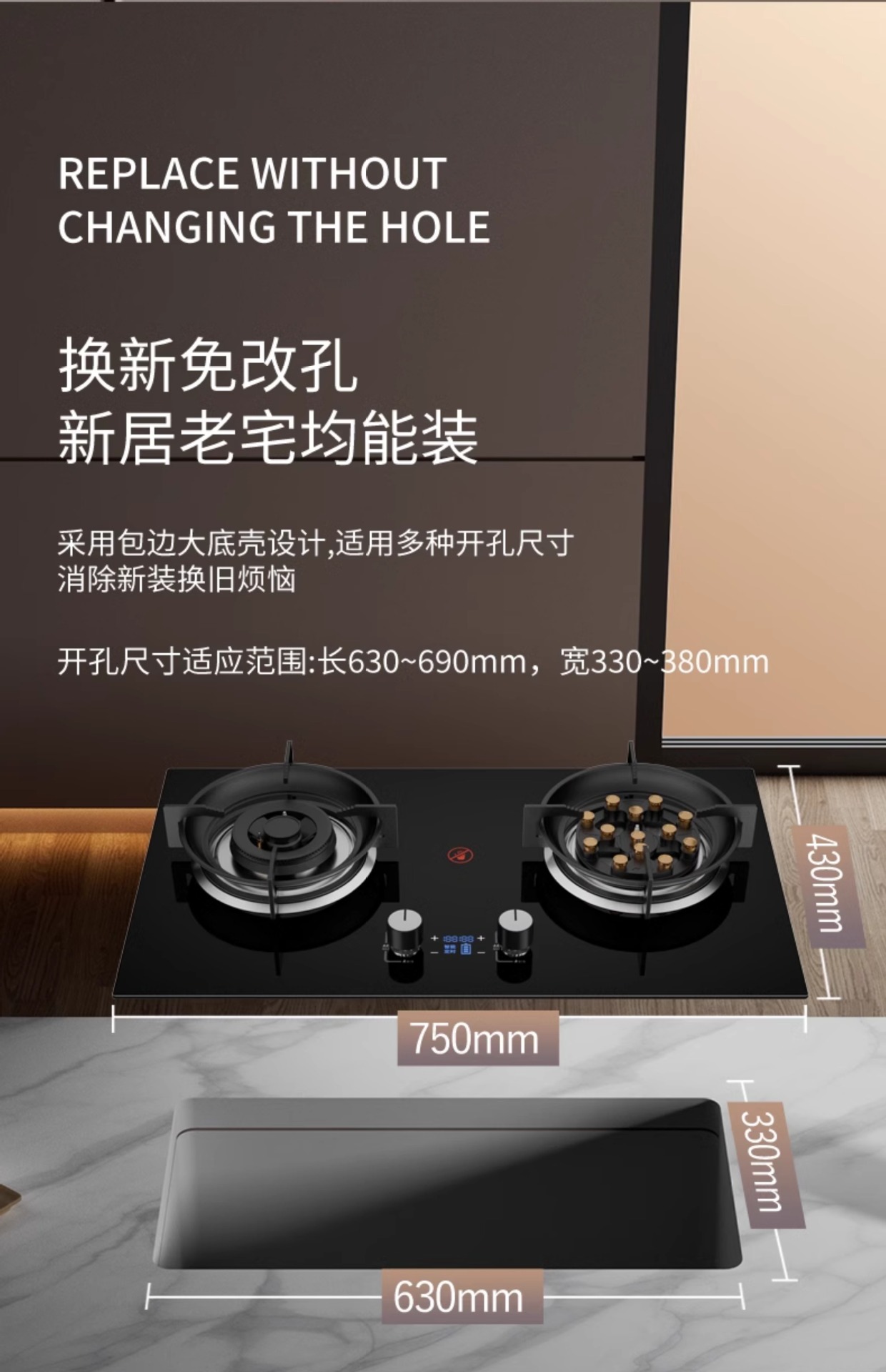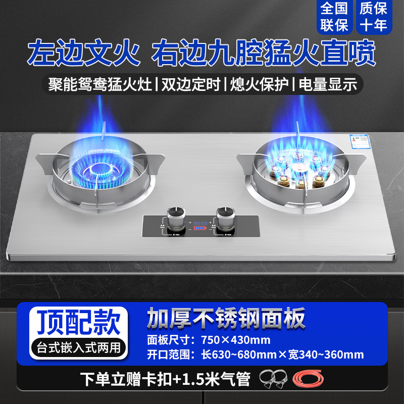 旗舰鸳鸯直喷猛火+大面板750+双边定时+不锈钢一体炉架