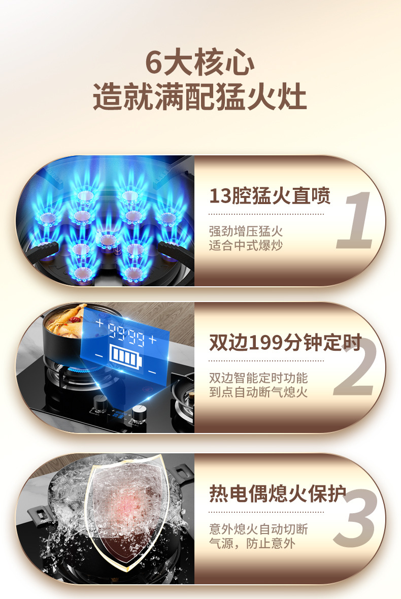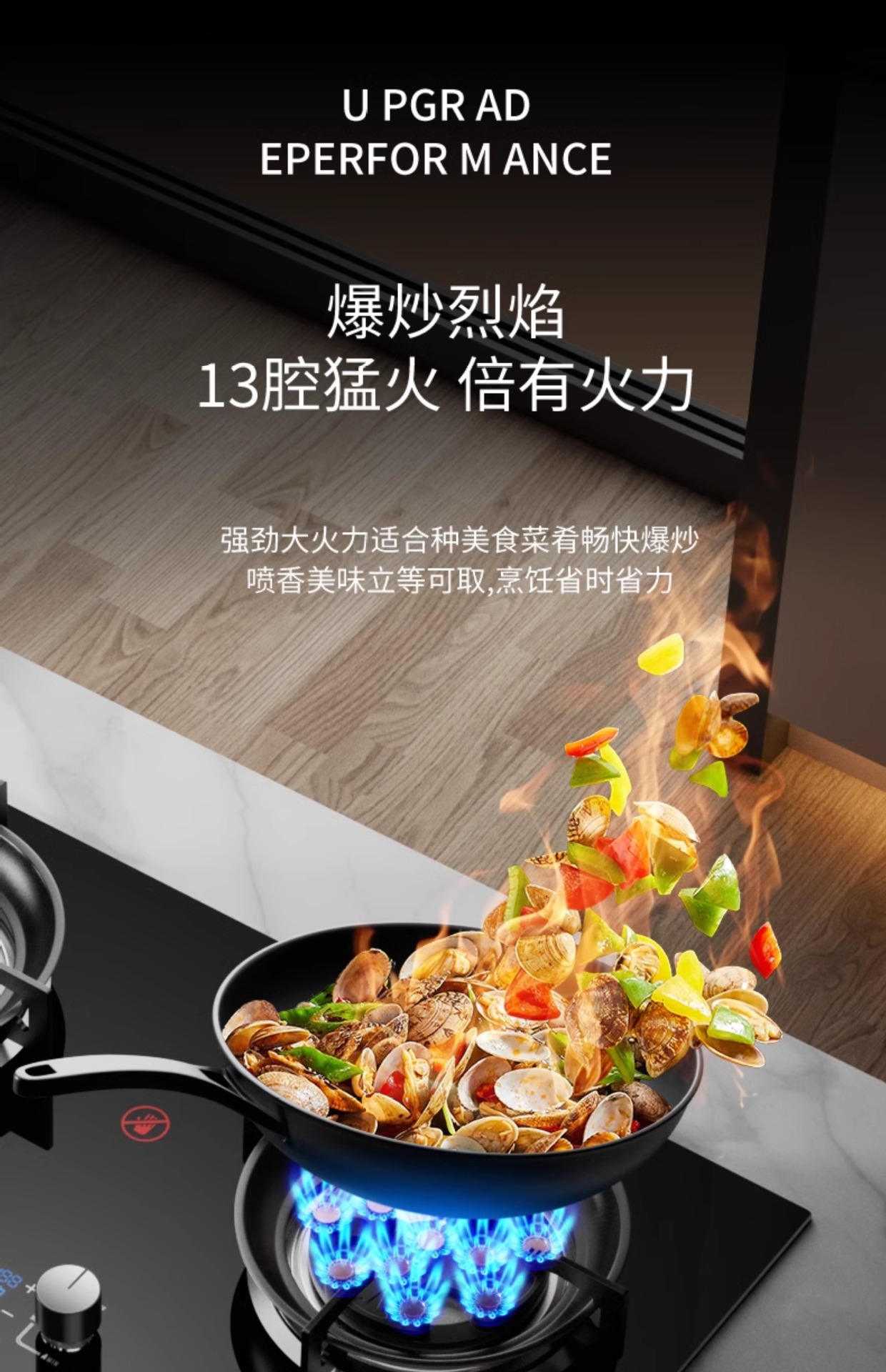 顶配鸳鸯十三枪超猛火款+大面板750钢化玻璃+双边定时+防风炉架