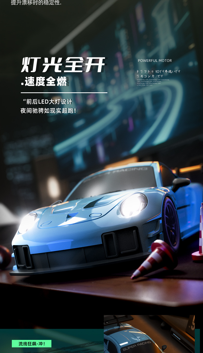 【浅蓝/保时捷】四驱三档调速/两套轮胎+灯光组