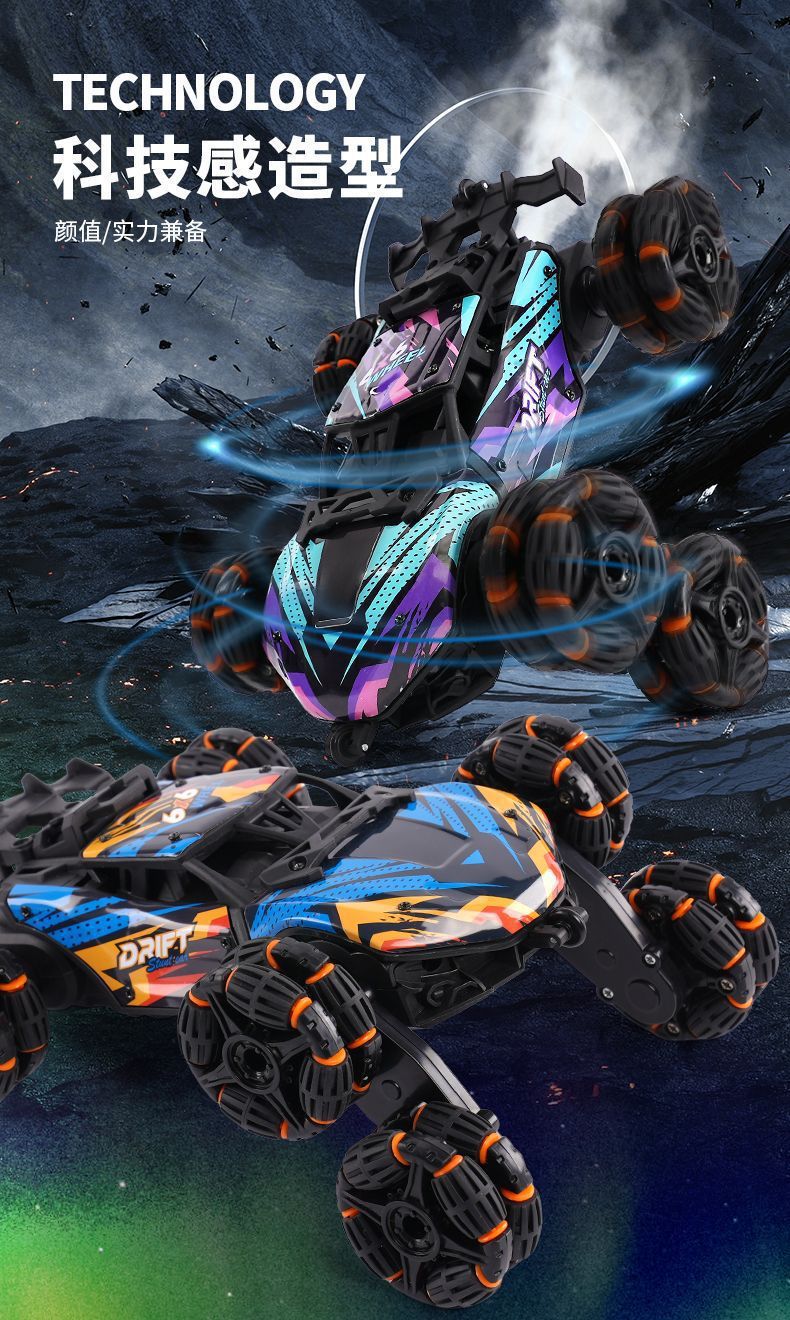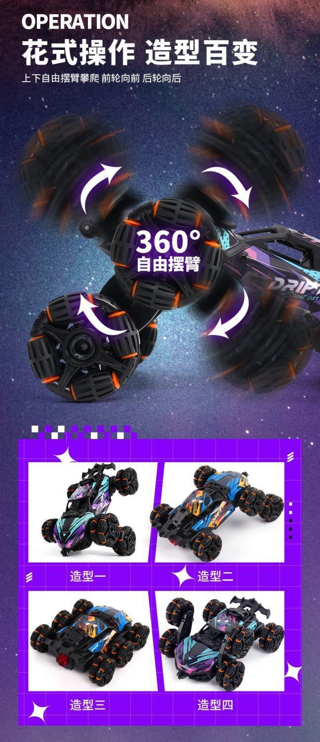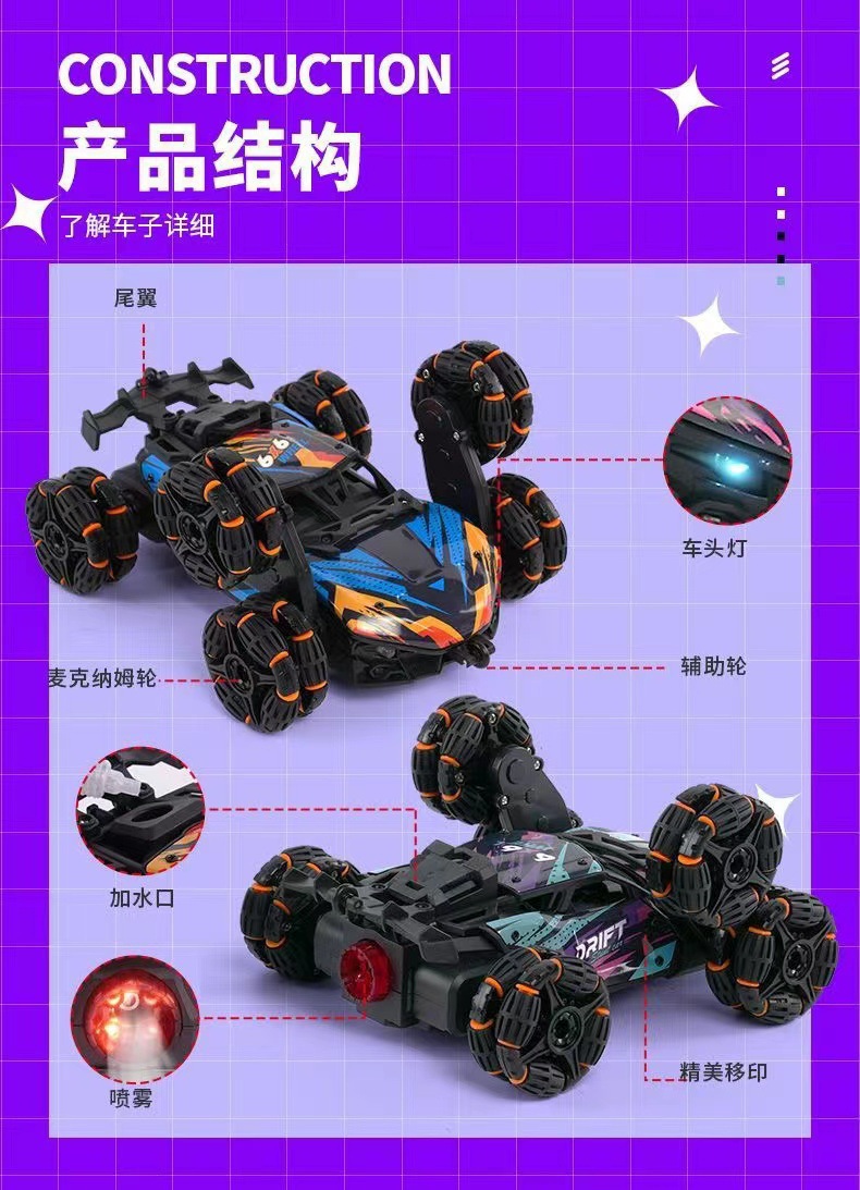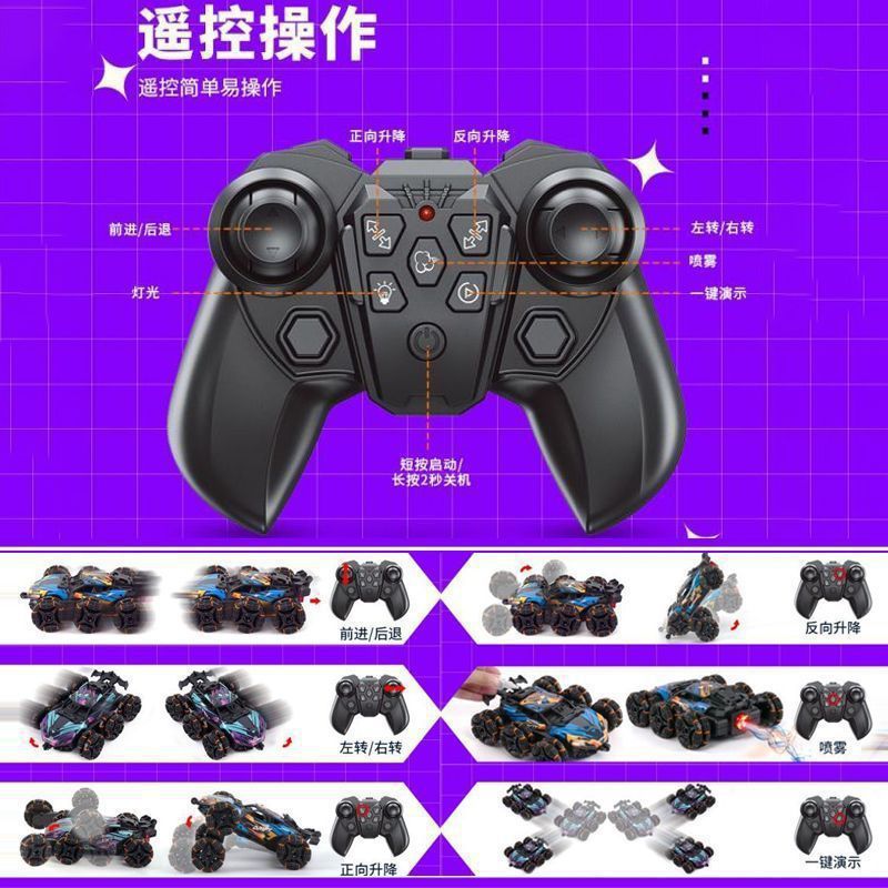六轮攀爬车-紫蓝【喷雾】手柄+手势遥控