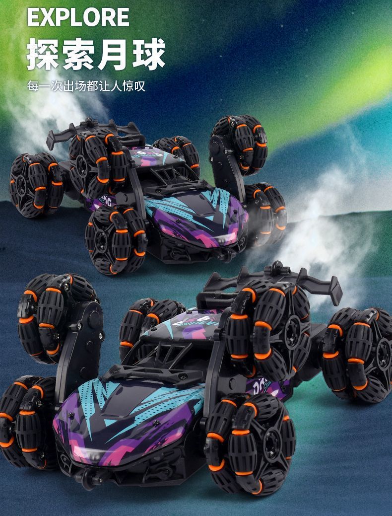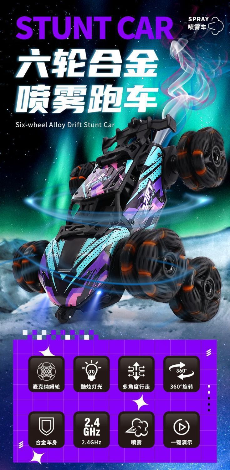 六轮攀爬车-紫蓝【喷雾】手柄遥控