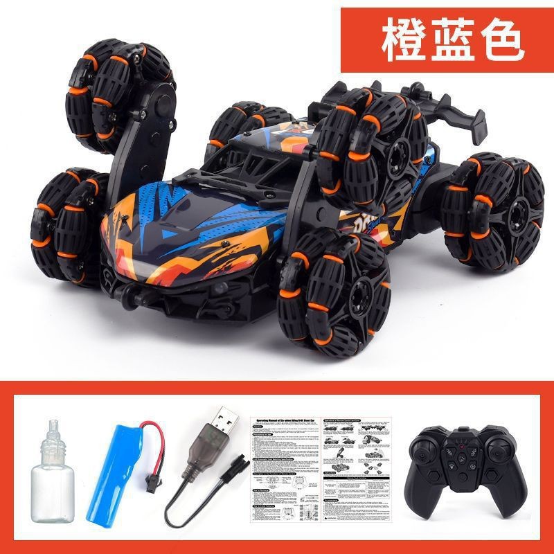 六轮攀爬车-橙蓝【喷雾】手柄=手势遥控