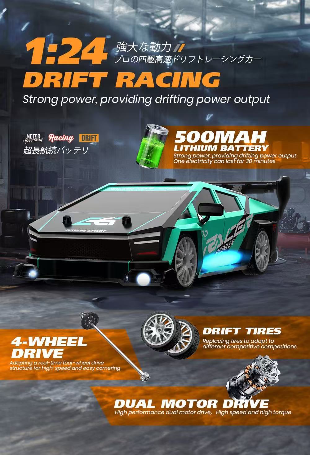 - 1∶24-【四驱漂移车-特斯拉绿色】英文盒-8603