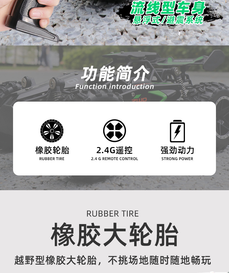 跨境1:18遥控高速车2.4G竟赛车RC模型车15km/h竞技遥控车
