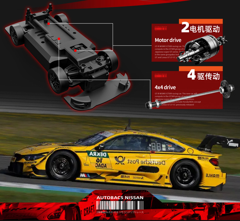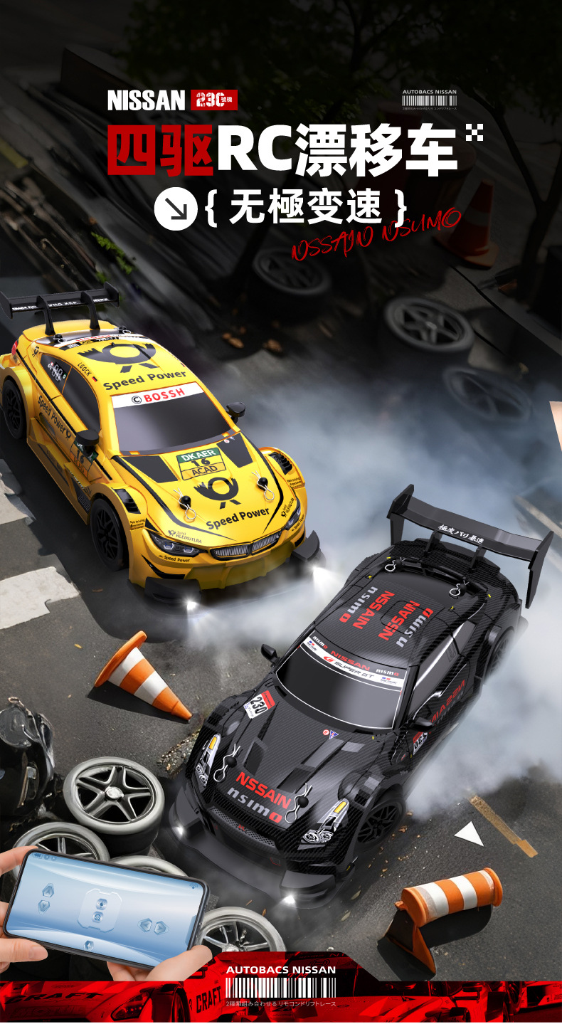 跨境漂移RC遥控赛车1:24四驱高竞速汽车电动GTR越野手机儿童玩具