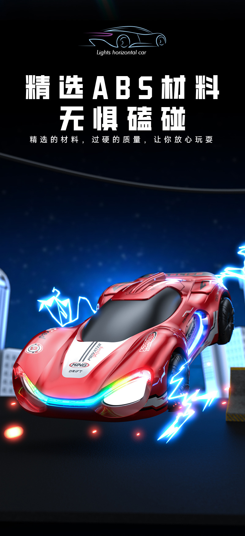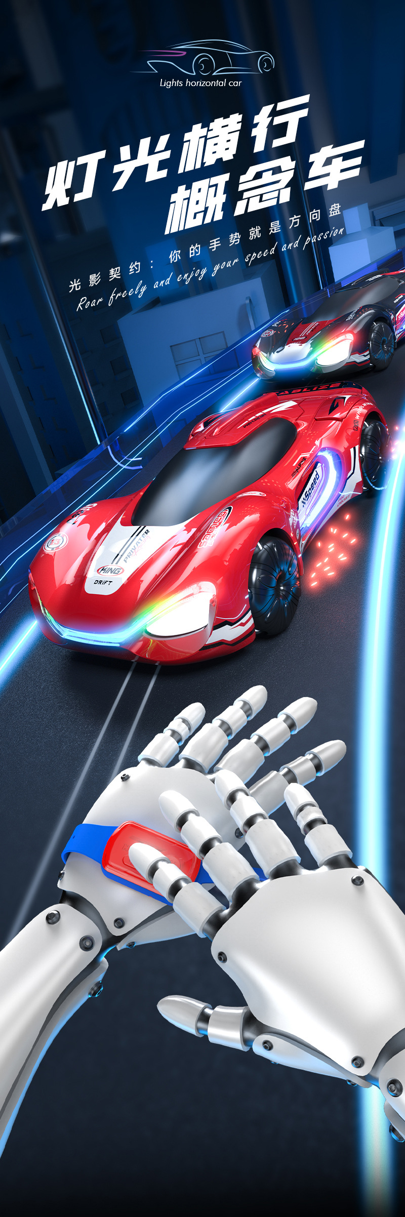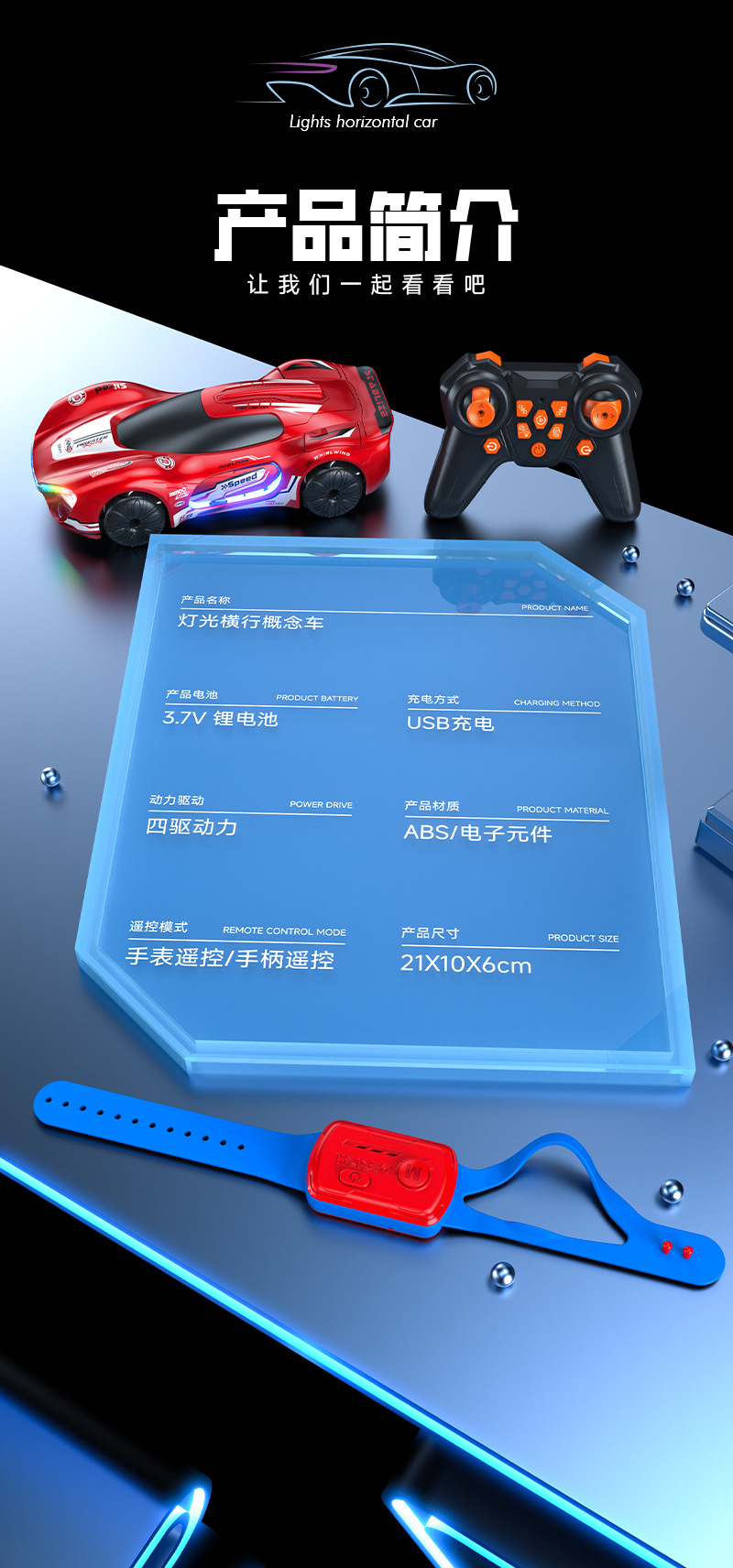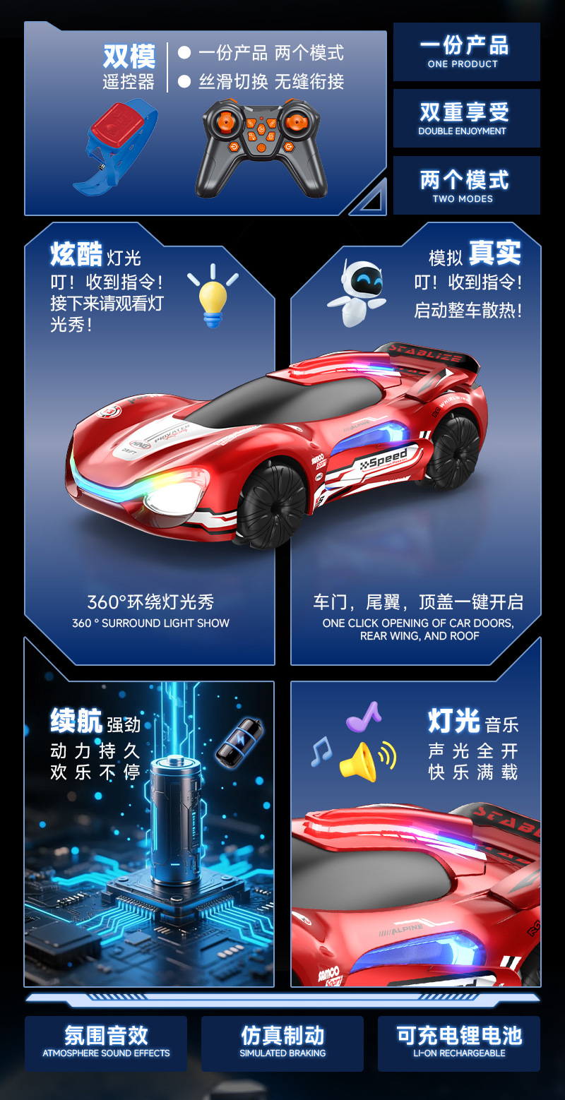 - 【双遥控版枫叶红】炫酷流光概念车-手柄+手表遥控