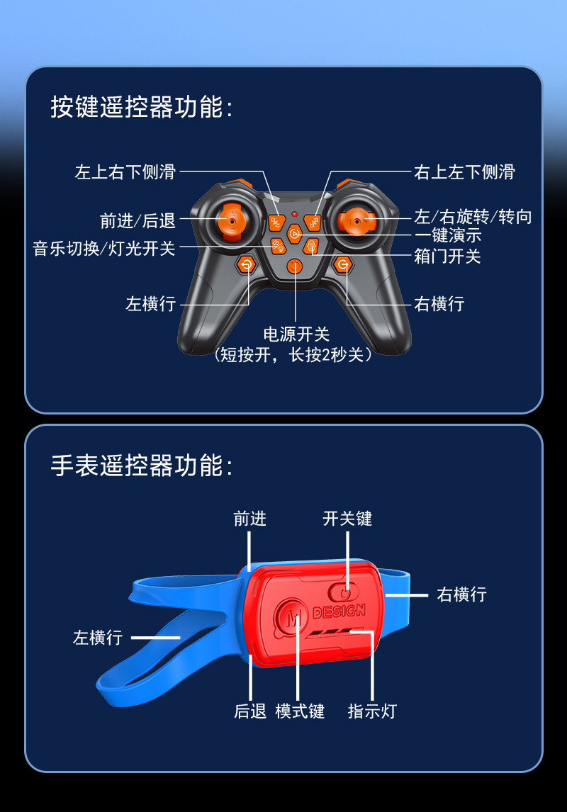 - 【双遥控版曜石黑】炫酷流光概念车-手柄+手表遥控