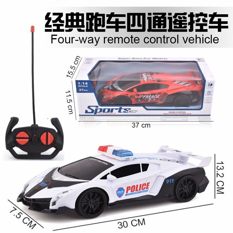 跨境大号遥控赛车1:14灯光四通警车高速漂移儿童电动无线玩具