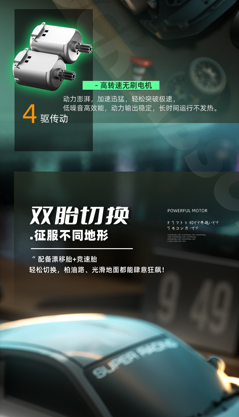 新款RC四驱高速漂移车米7遥控竞速赛车玩具男孩礼物模型汽车变速