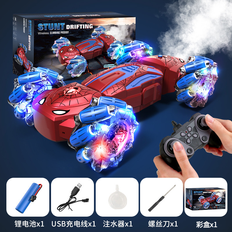 红色】猫猫蜘蛛双面特技车单控发光轮