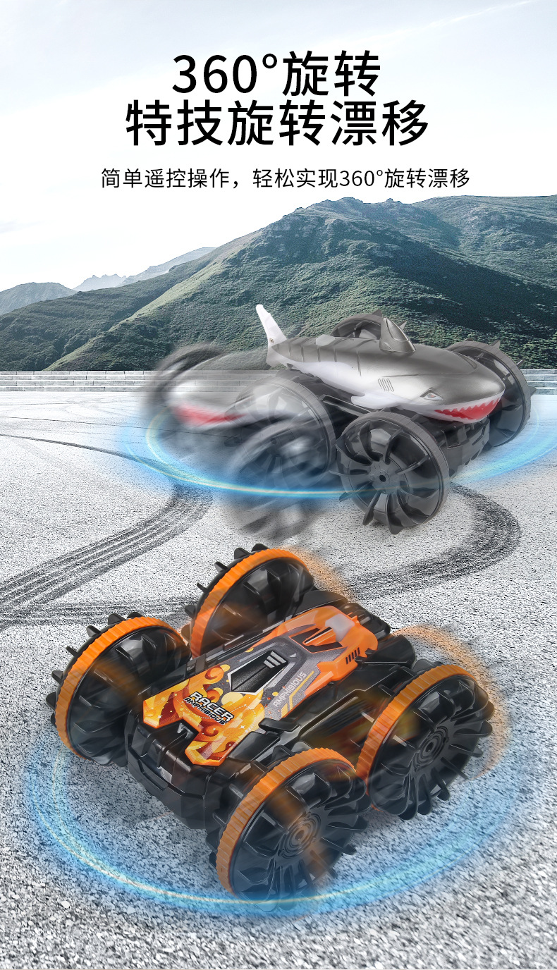 跨境儿童遥控汽车特技漂移赛车水陆两栖充电遥控车360旋转玩具车