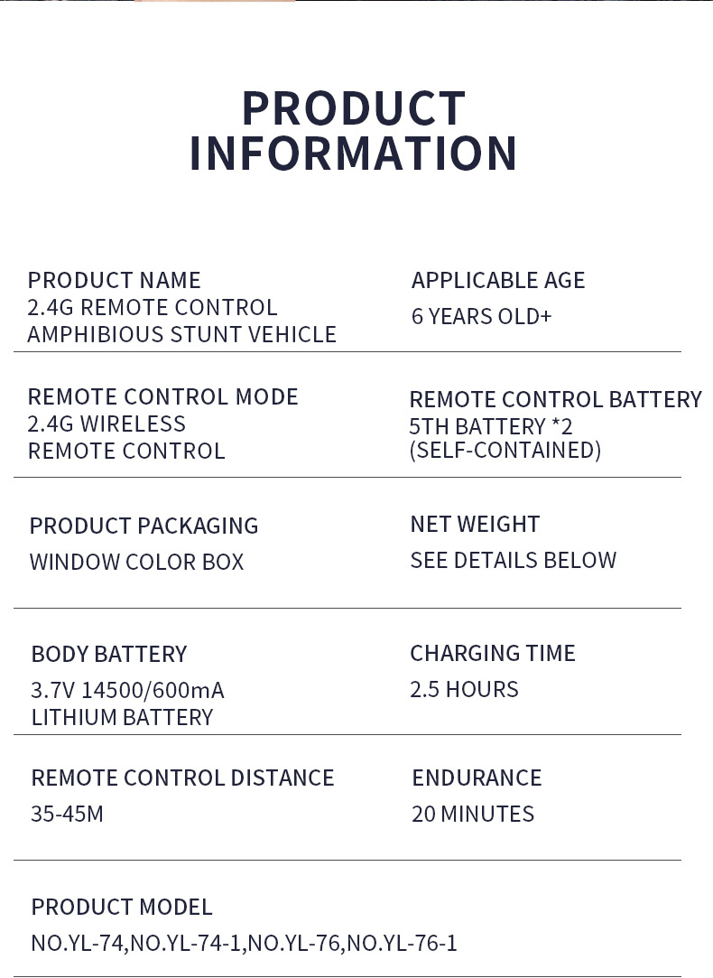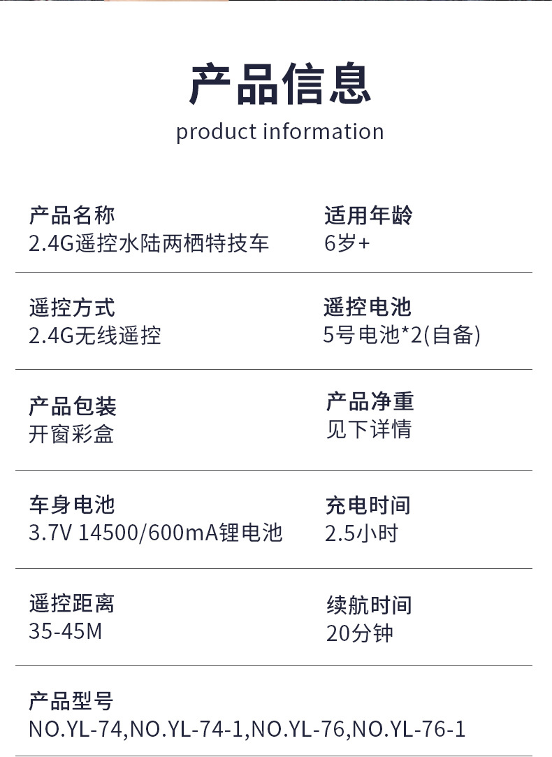 NO.YL-76水陆两栖遥控车鲨鱼(单手柄遥控)565g