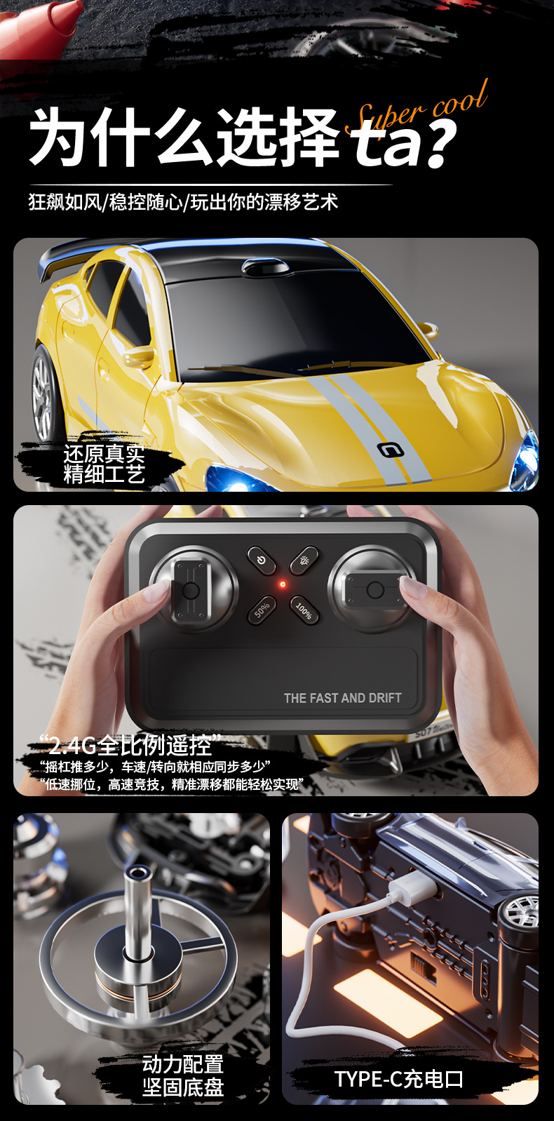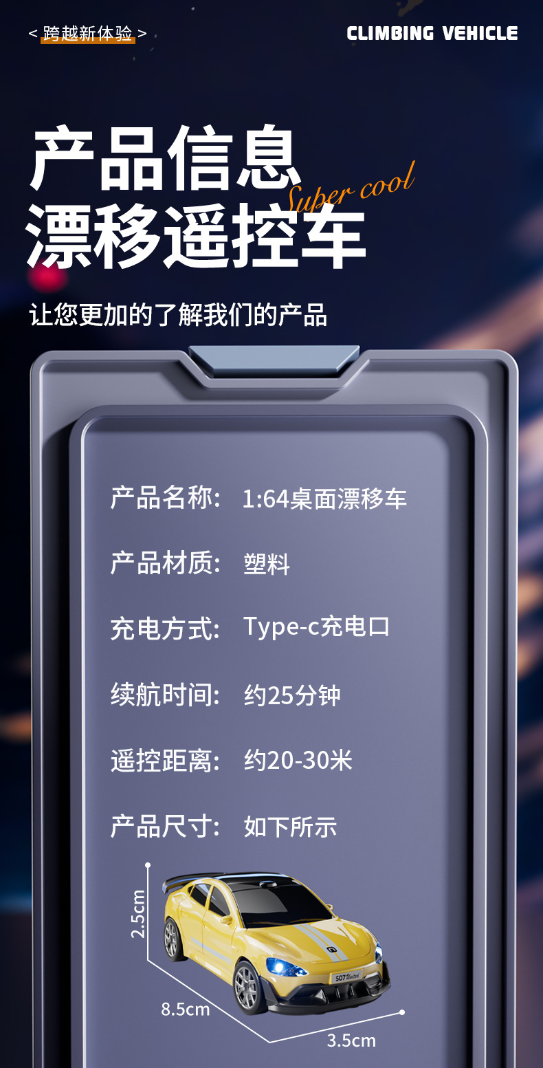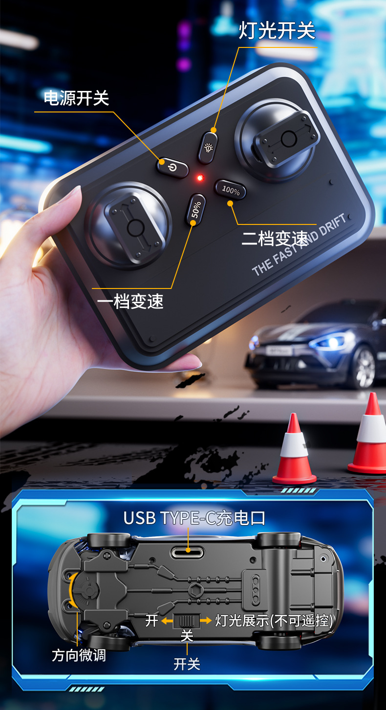 1:64小米RC漂移遥控赛车全比例特技桌面仿真2.4G口袋迷你四驱模型