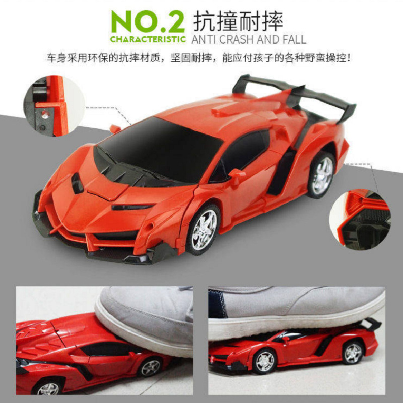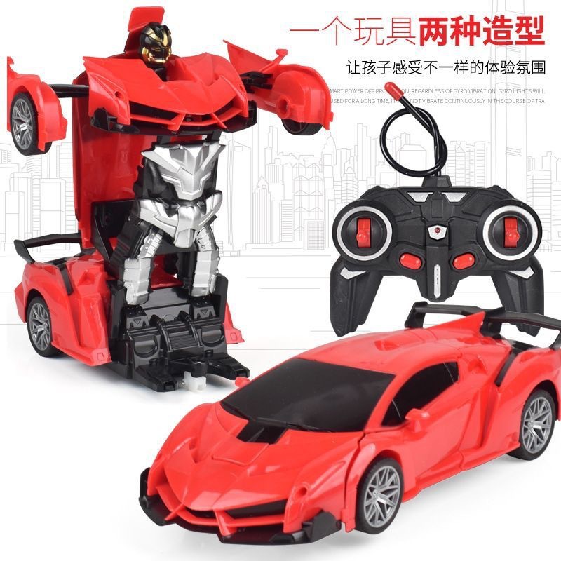 跨境1:18一键变形遥控车机器人模型充电动赛车男孩儿童玩具车
