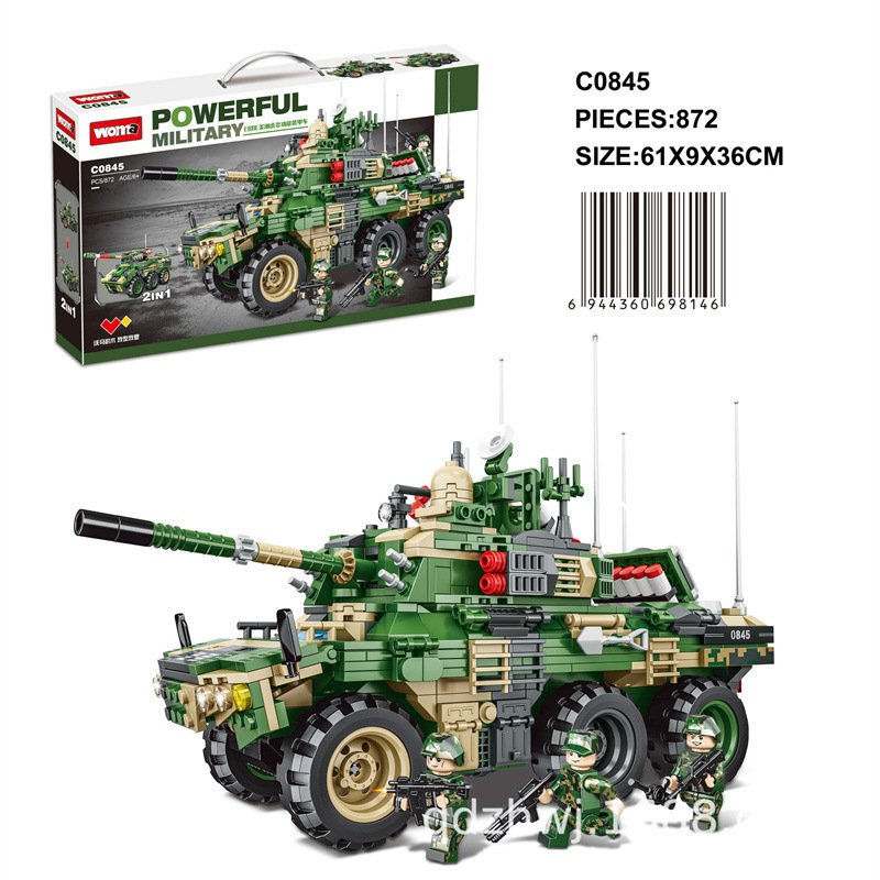 新款沃马积木拼装装甲车坦克车模型6-14岁男孩动手动脑拼装益智玩