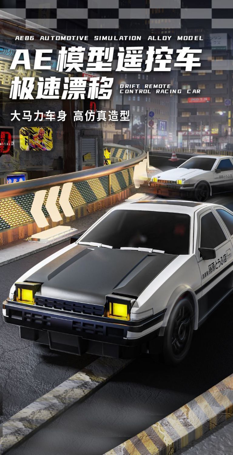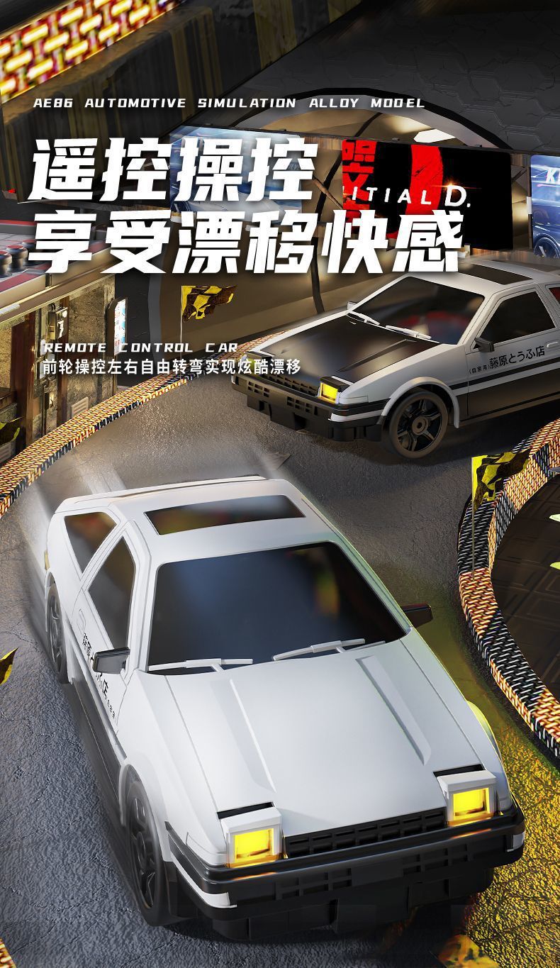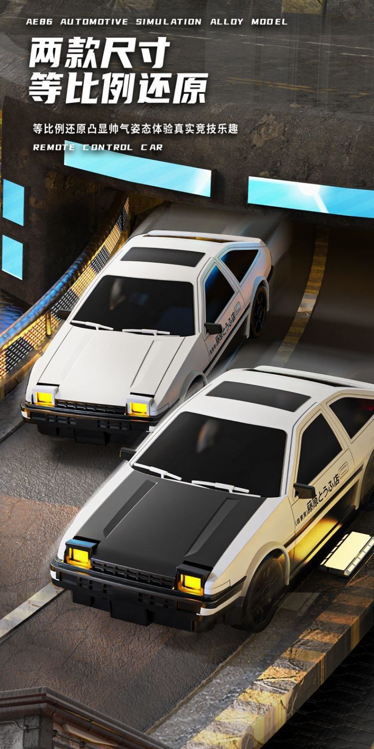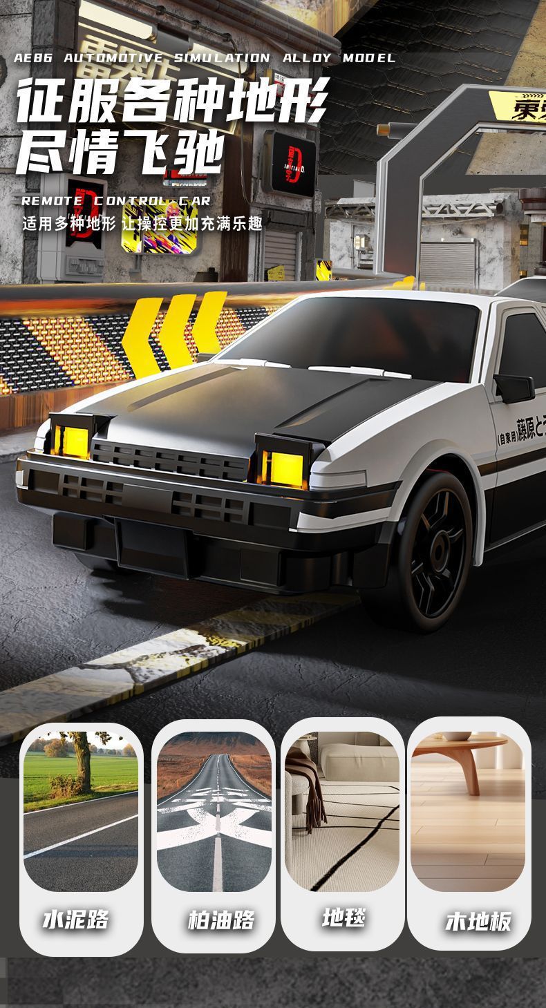 跨境RC可翻灯AE86漂移赛车四驱高速赛儿童灯光遥控车玩具汽车模型